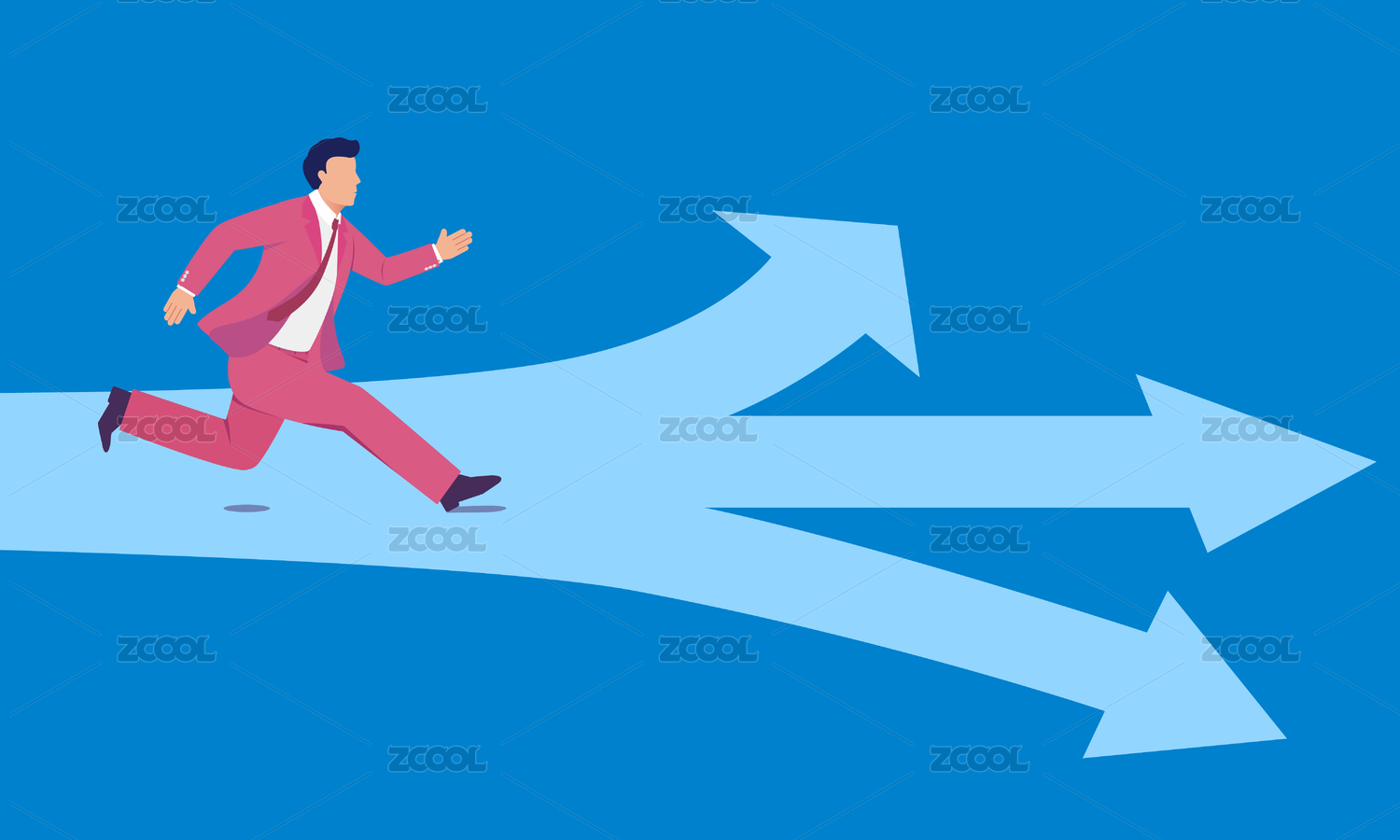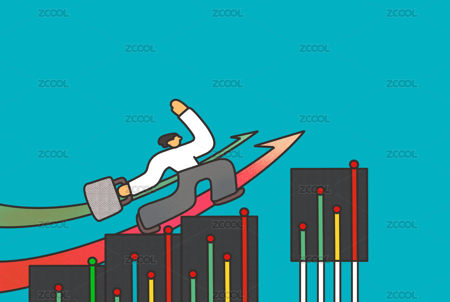 商人顺着箭头向上快速奔跑的扁平简约插画