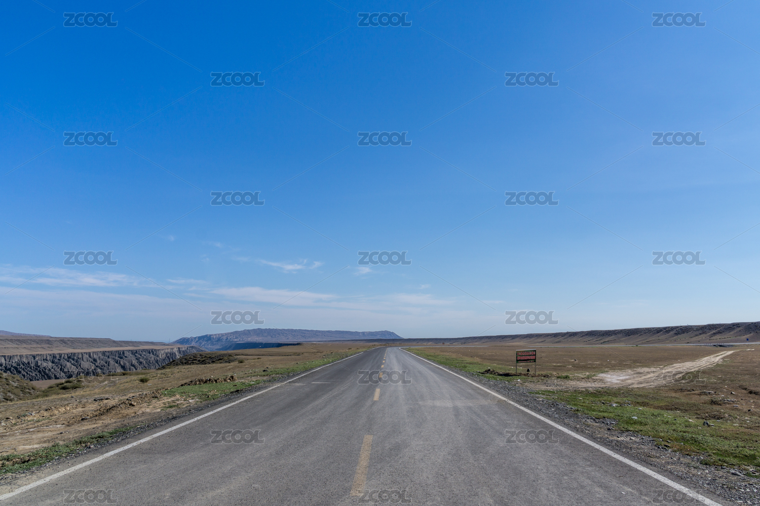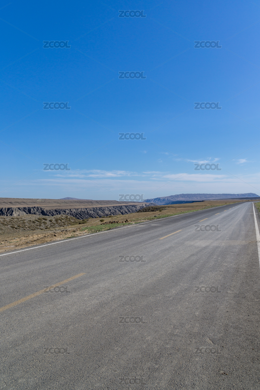 夏季晴天中国新疆独子山G217国道戈壁滩山地公路