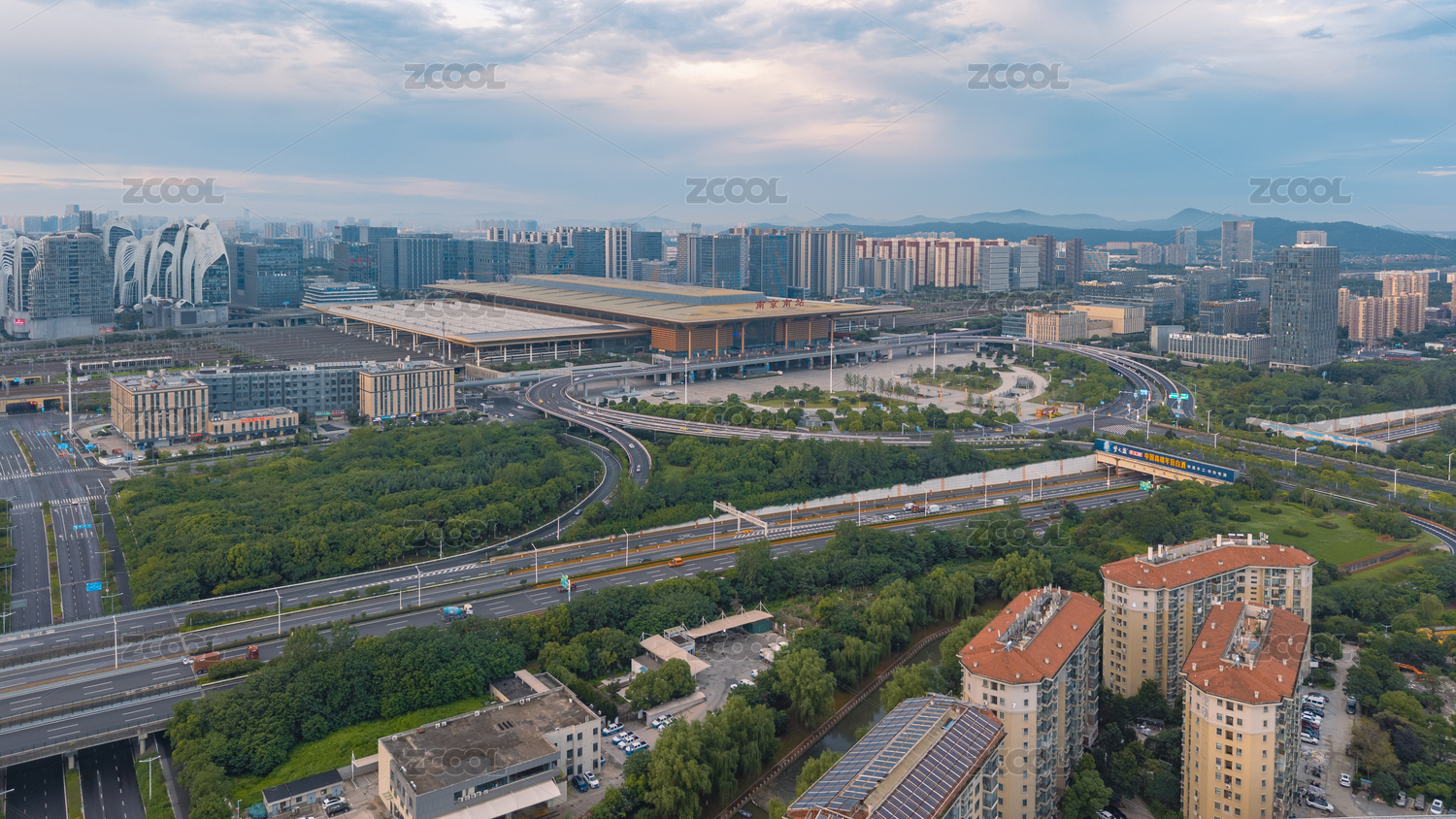 航拍清晨的南京南站