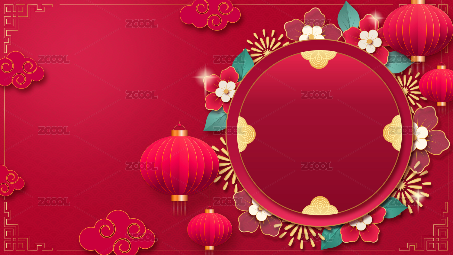新年喜庆灯笼祥云烟花爆竹大气红色海报背景