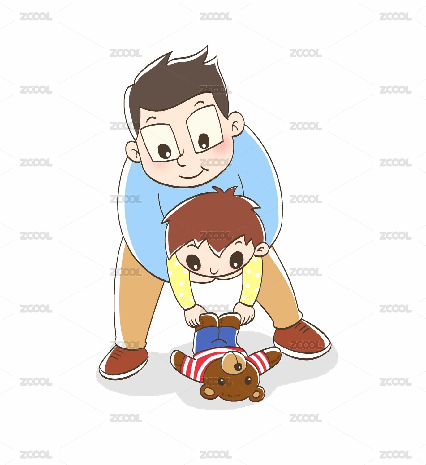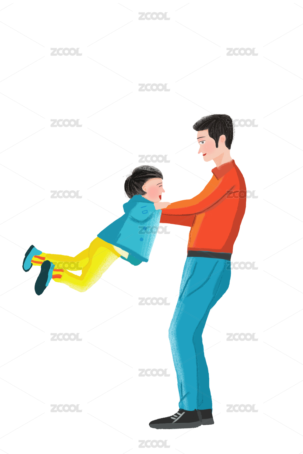 爸爸双手抱起孩子, 像过山车一样上下左右移动