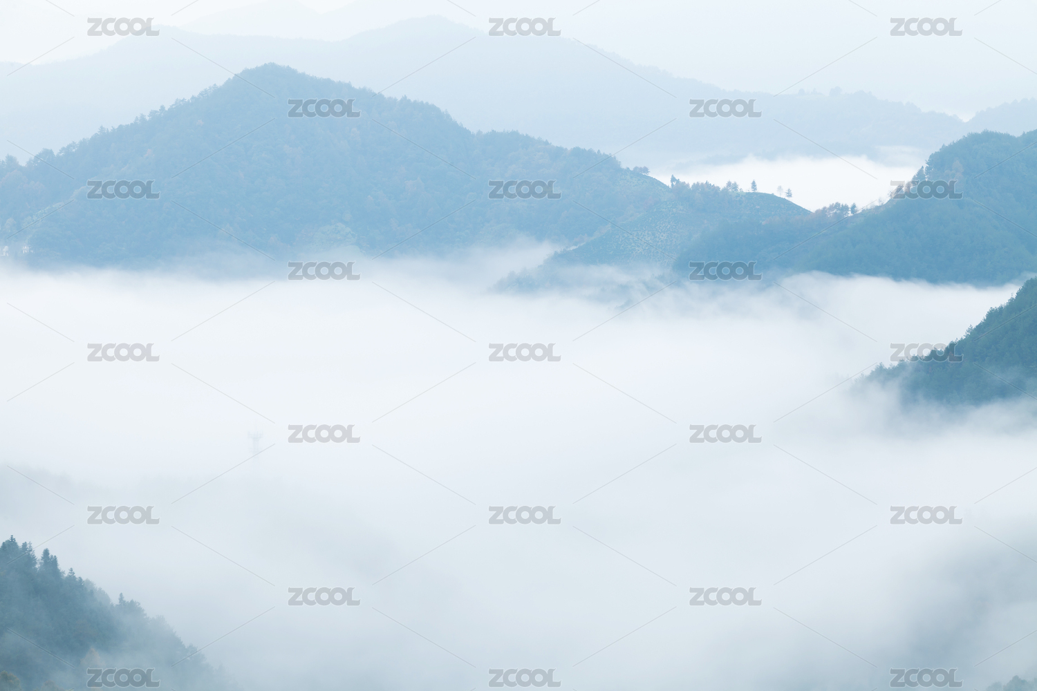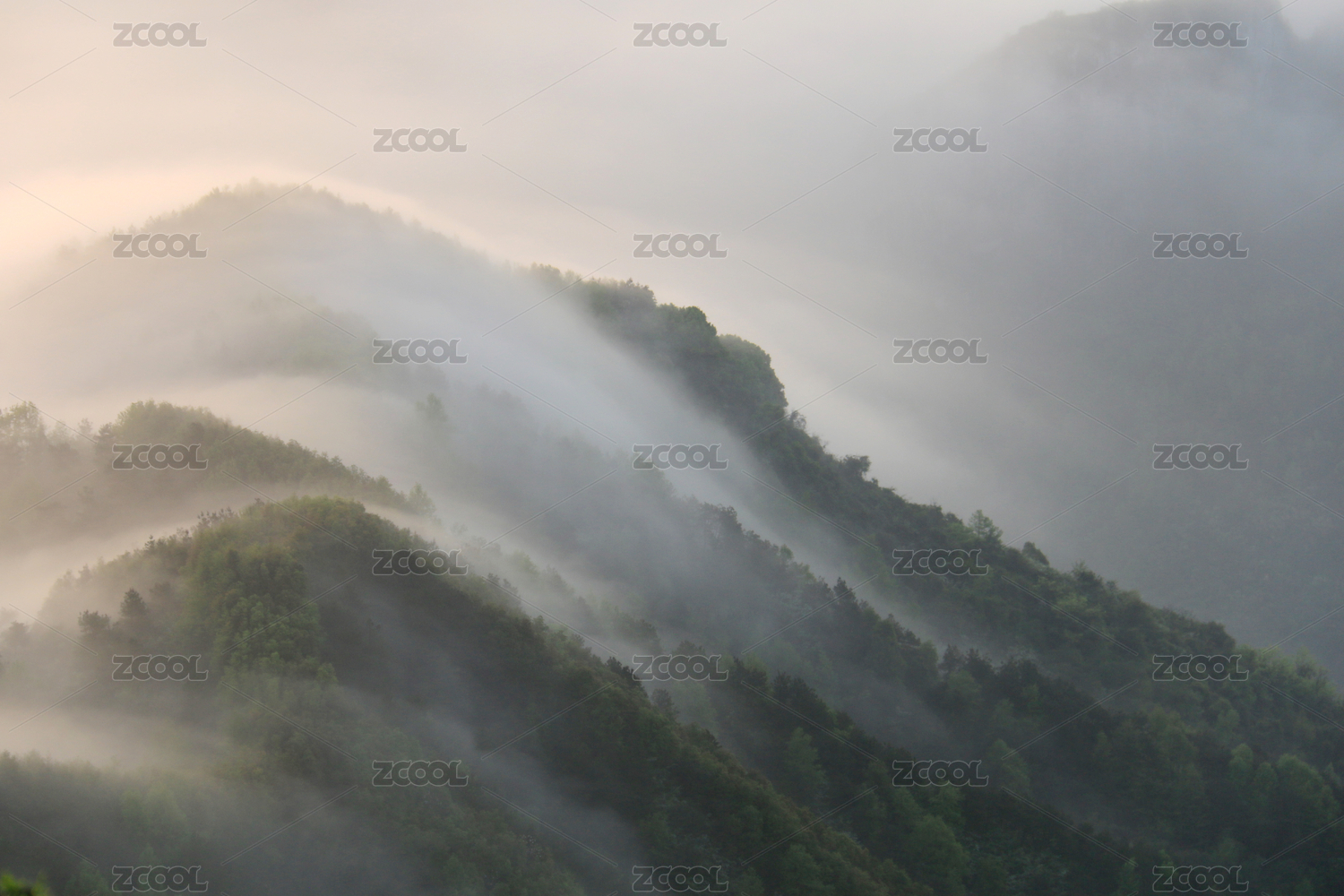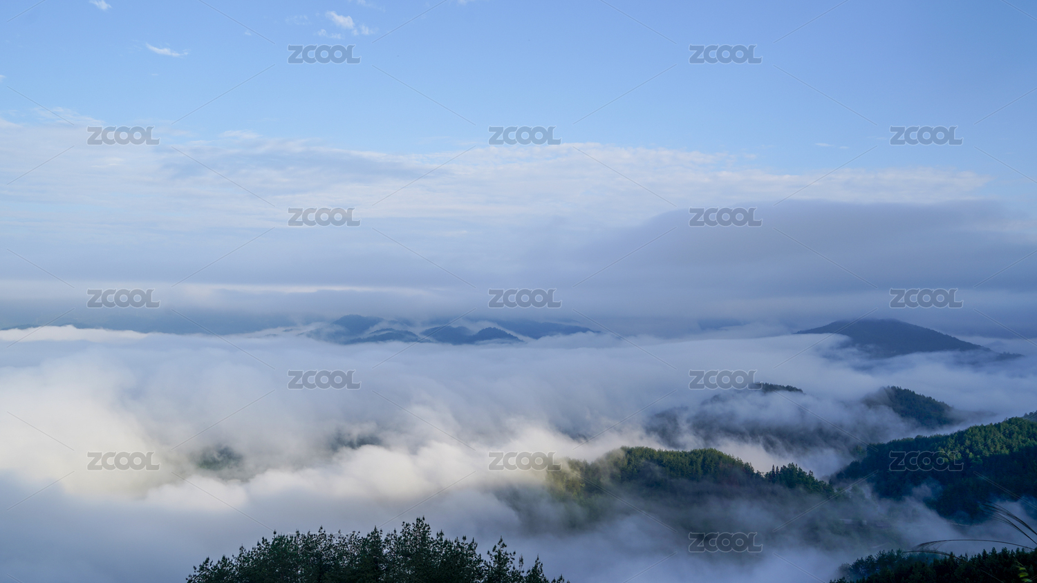 很多的青山白云和白雾