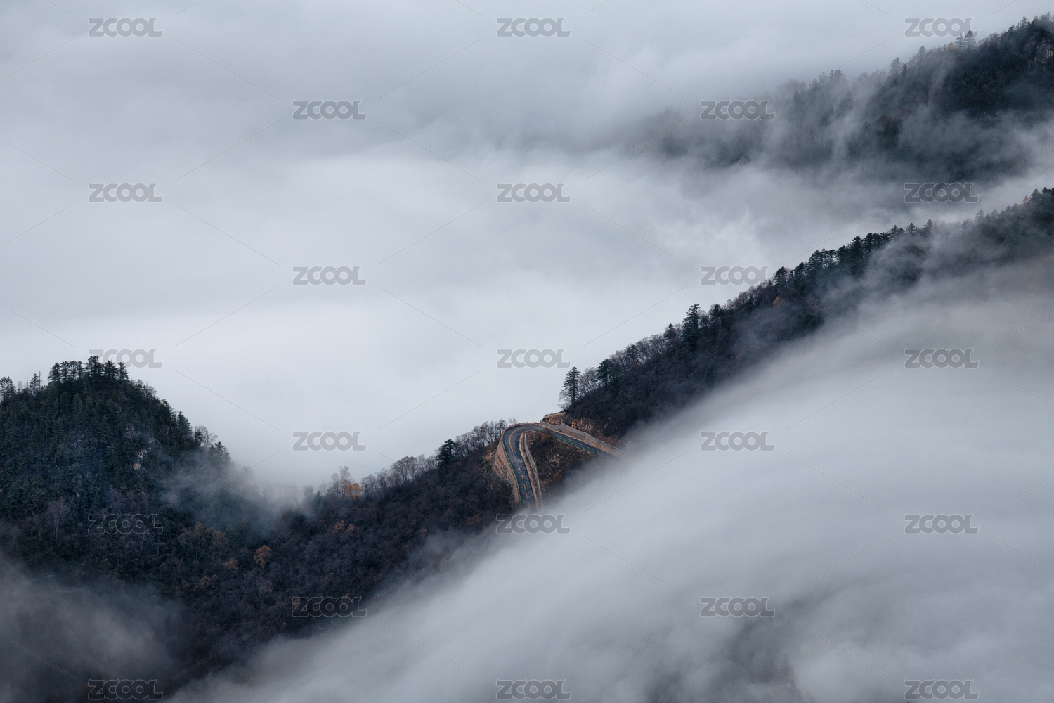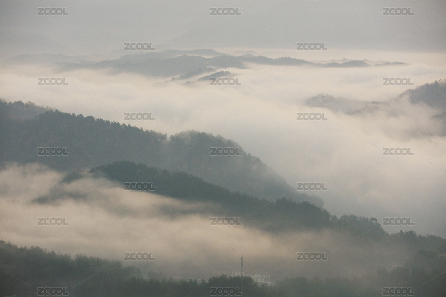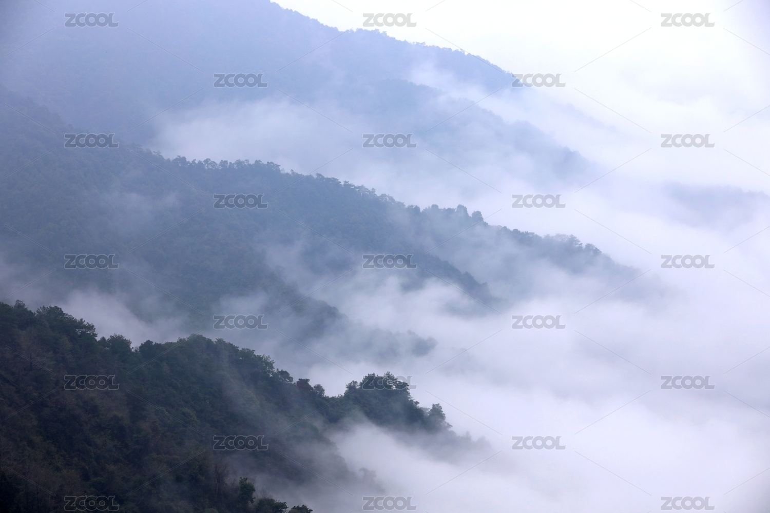 很多的青山白云和白雾