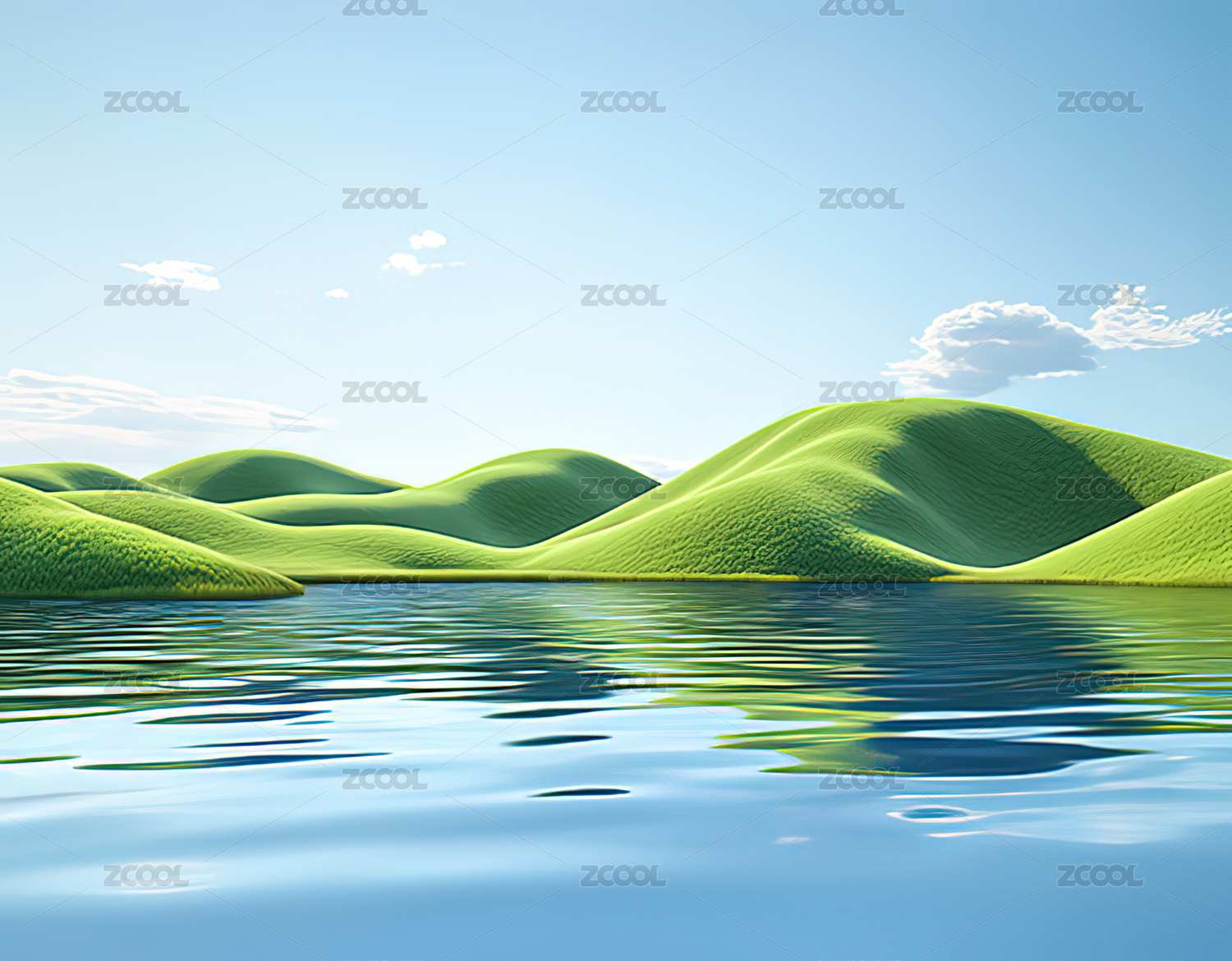 草地,山丘,湖泊,天空,云彩,绿色,自然,景观,宁静,和平