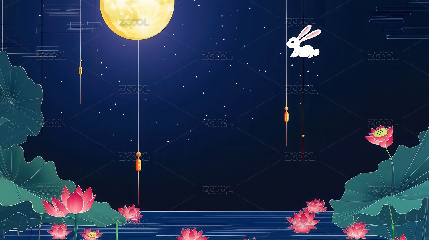 中秋节插画,满月与玉兔
