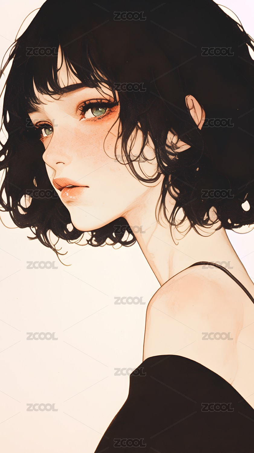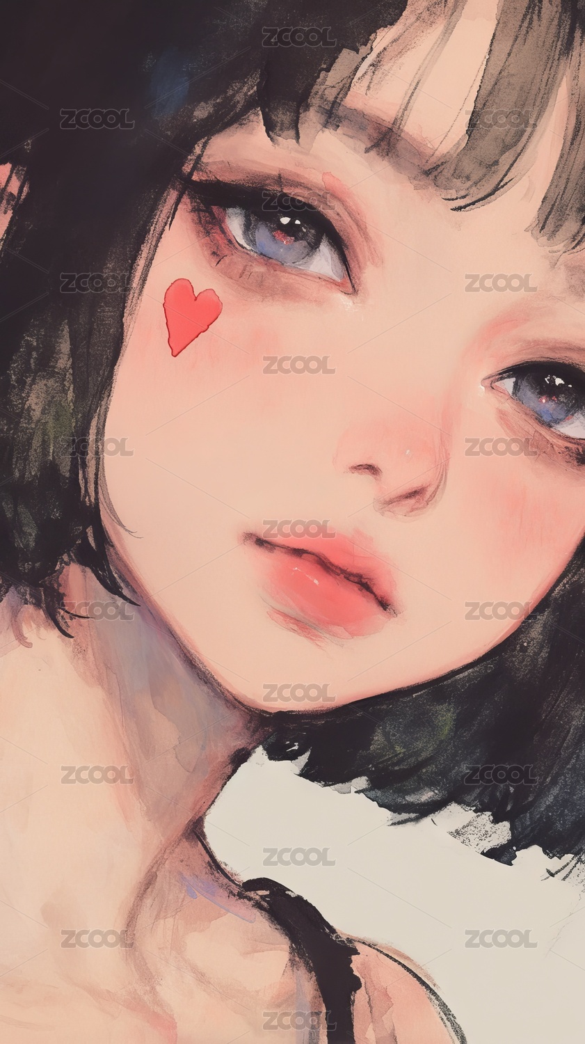狐狸眼,恶魔,翅膀,花钿,短发,挑染,泪痣,壁纸