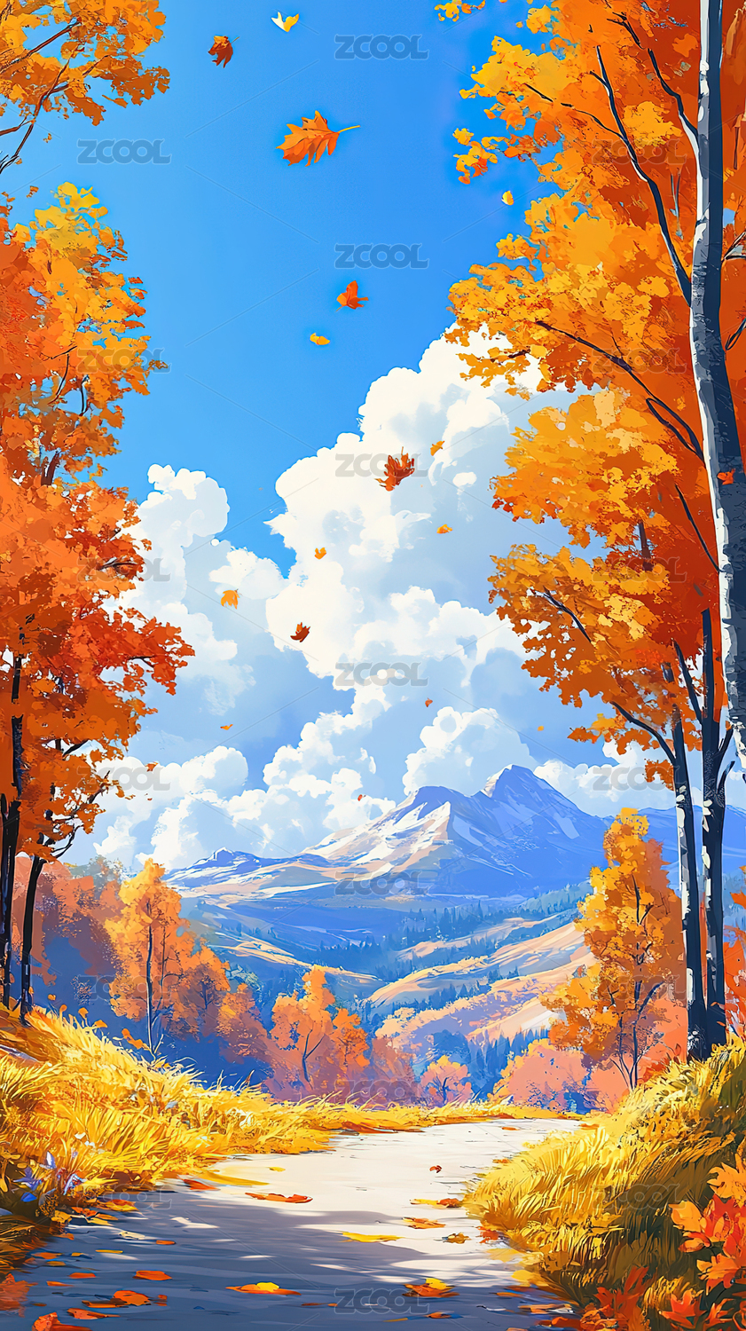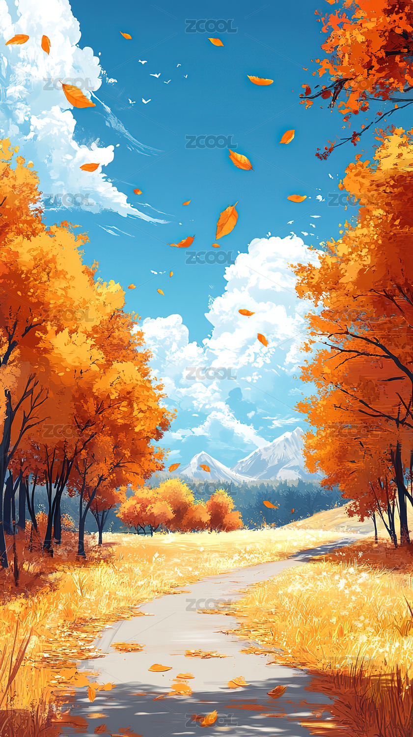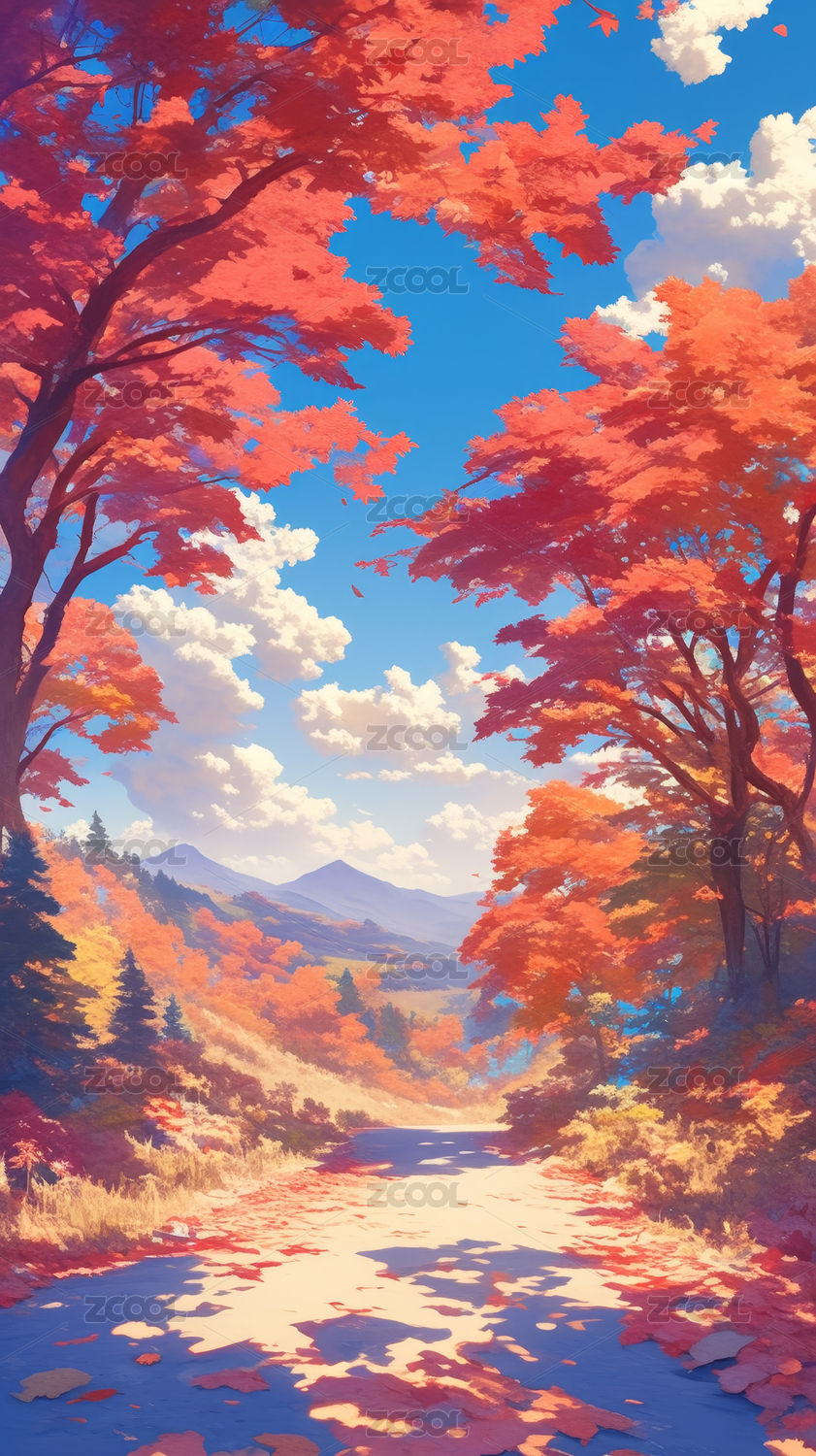 户外,白昼,风景,天空,黄色,蓝色,森林,公园,叶子,樱花