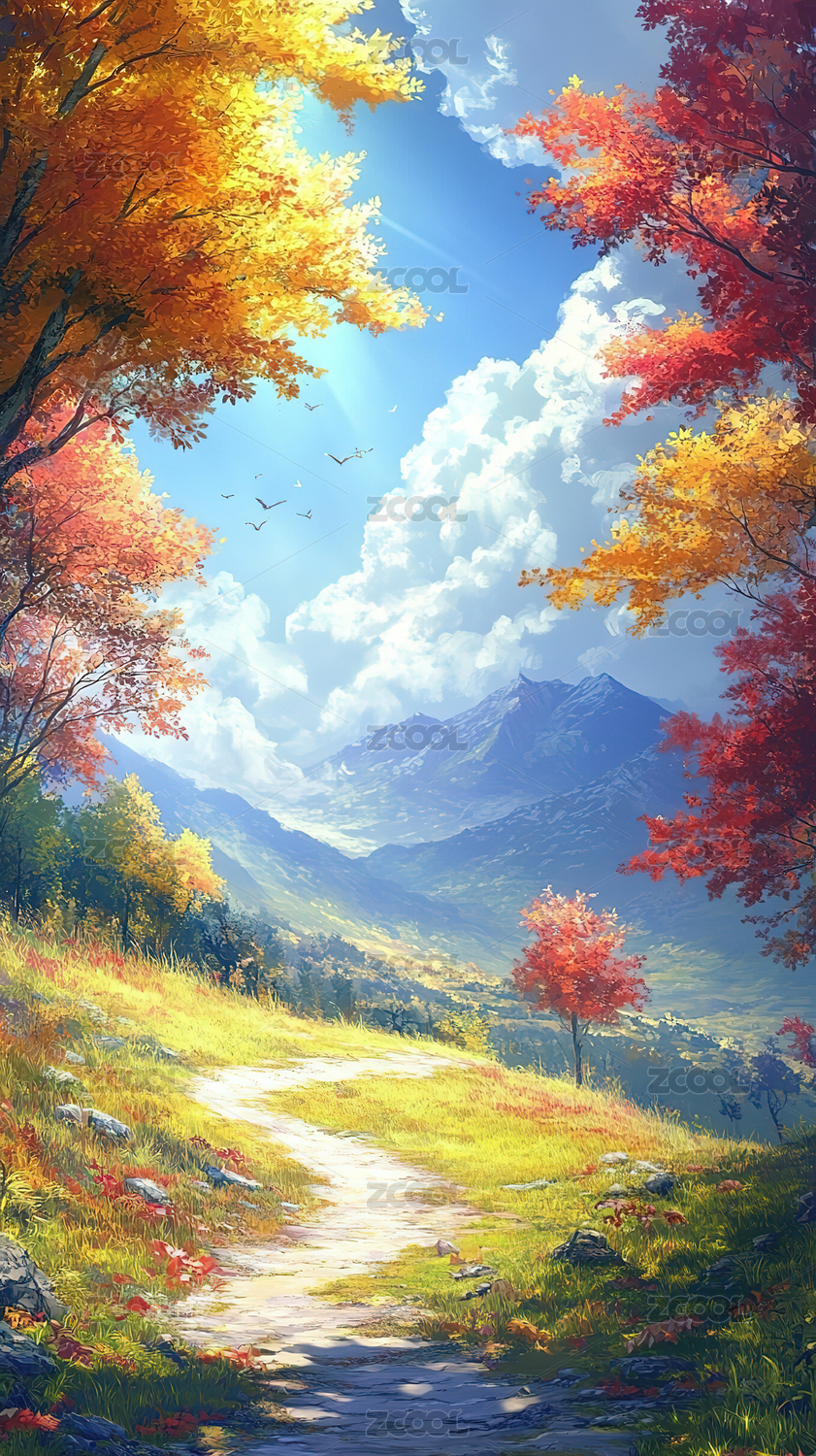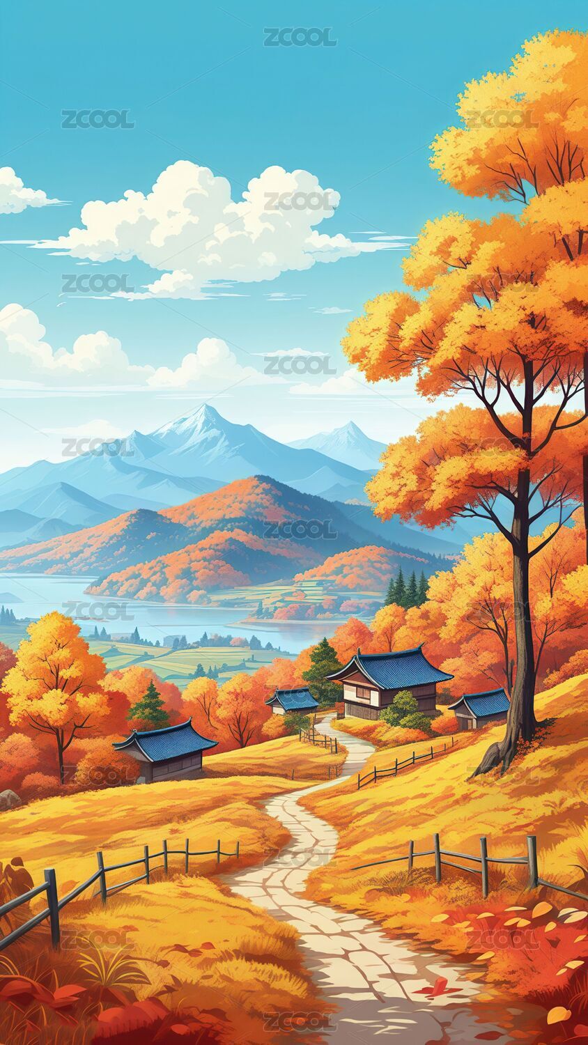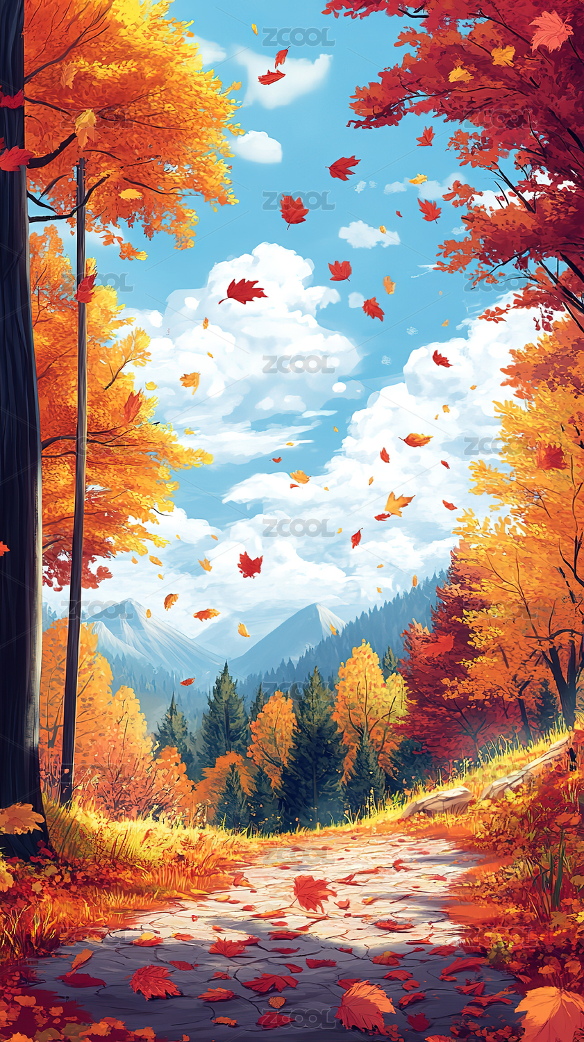 户外,白昼,风景,天空,黄色,蓝色,森林,公园,叶子,樱花