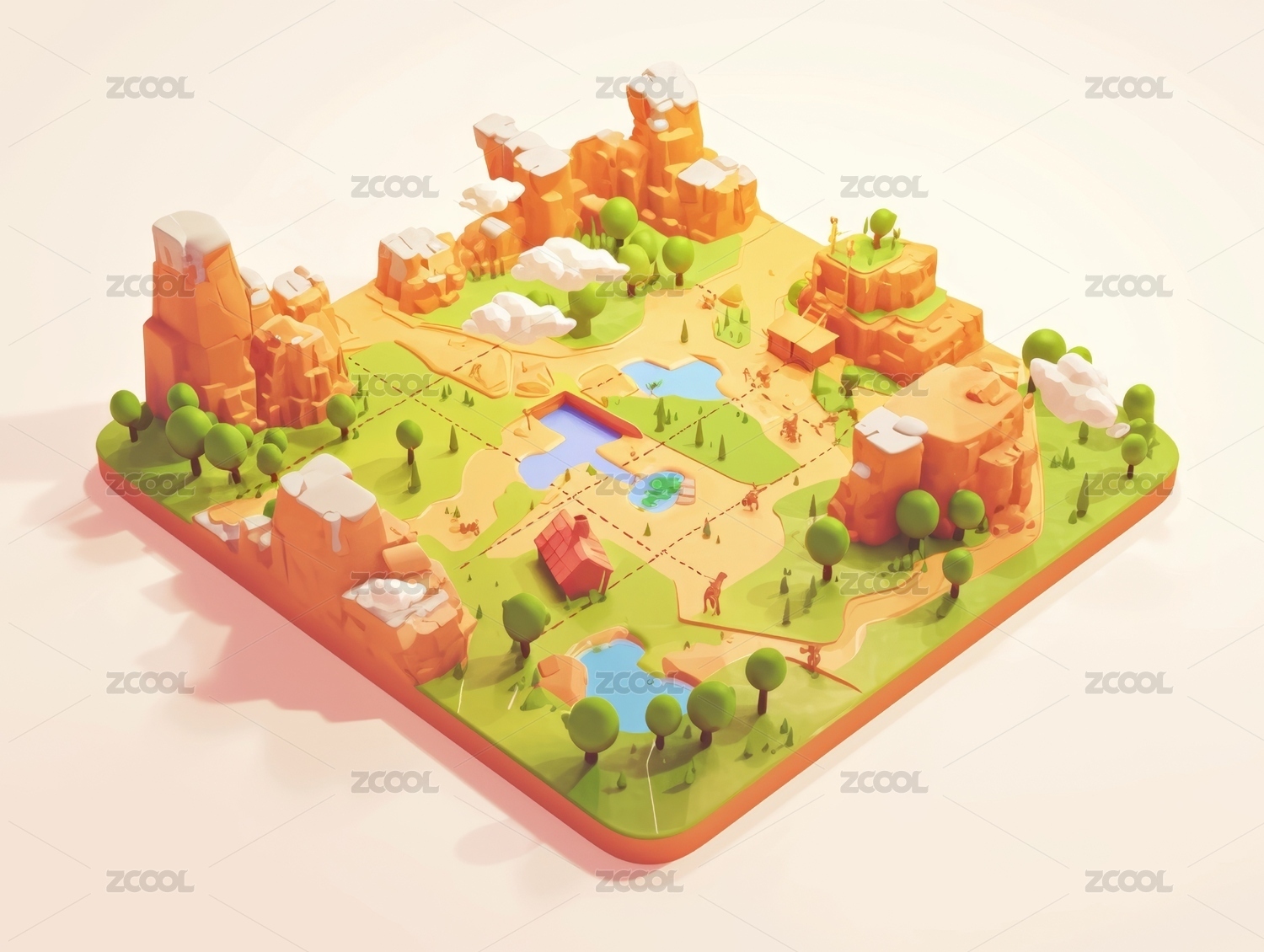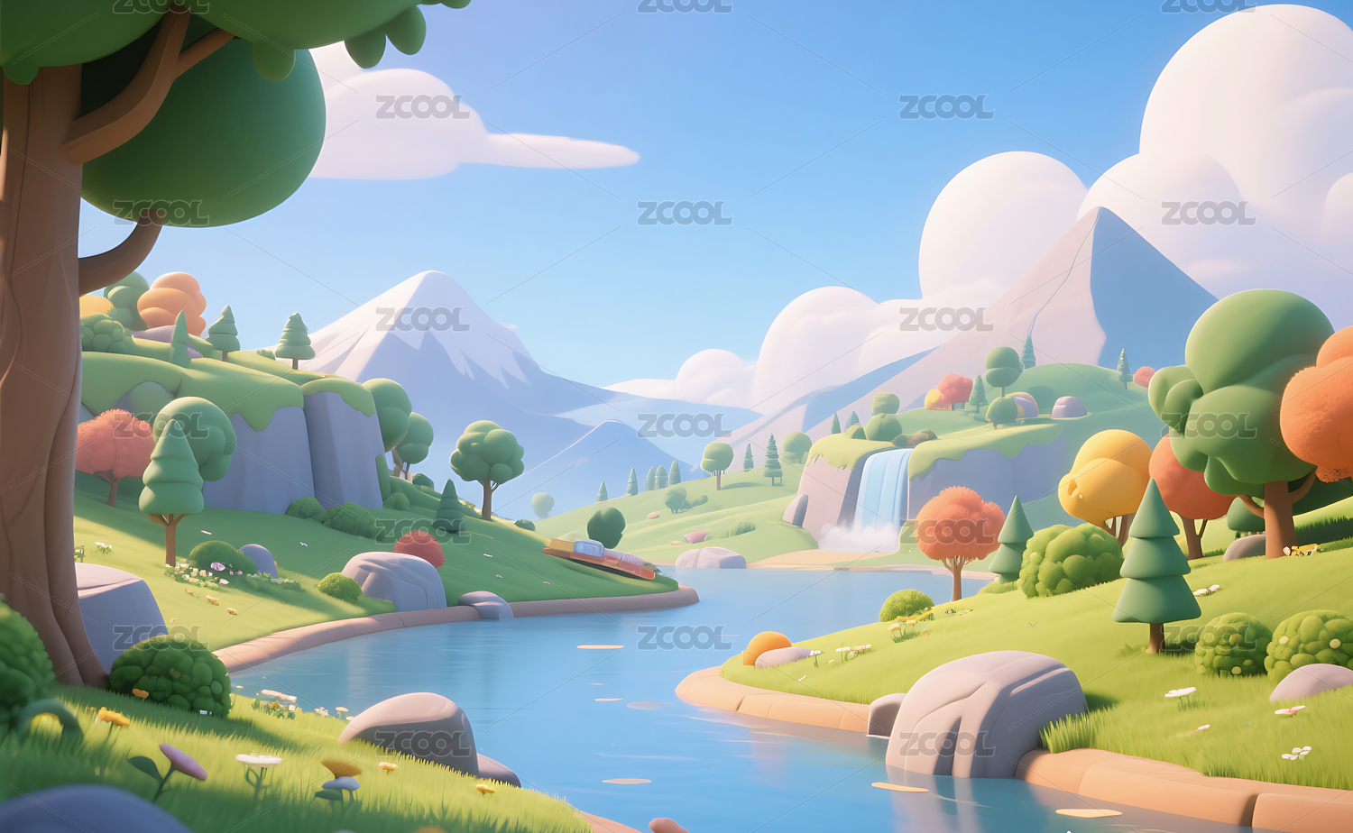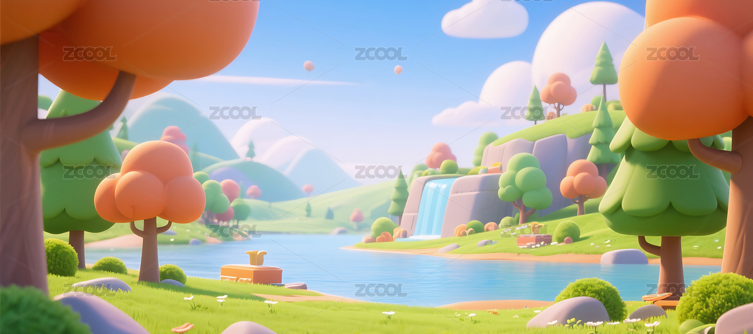 3D卡通自然场景插画