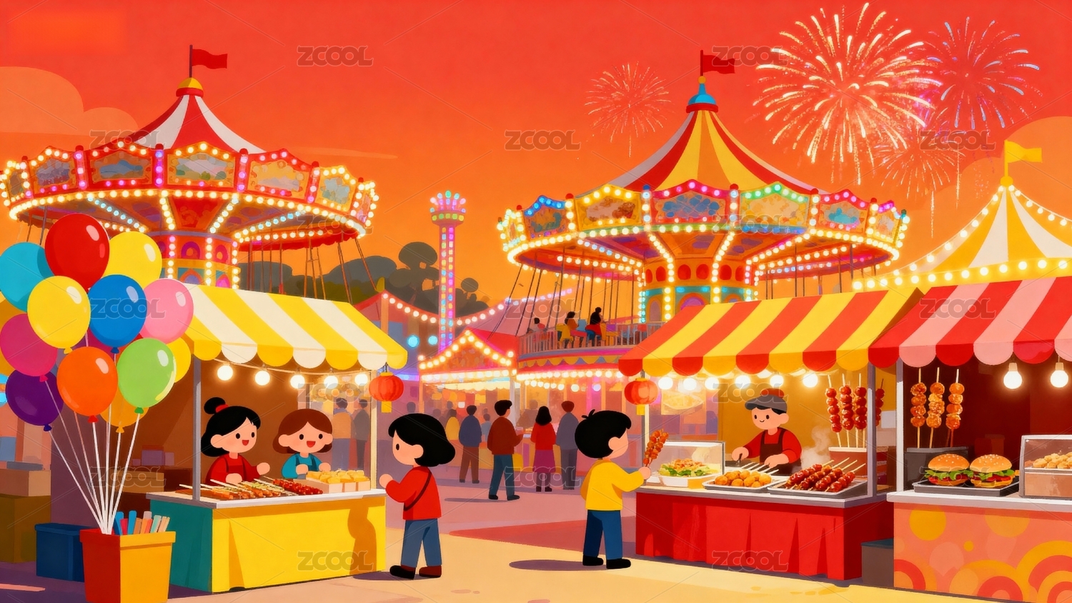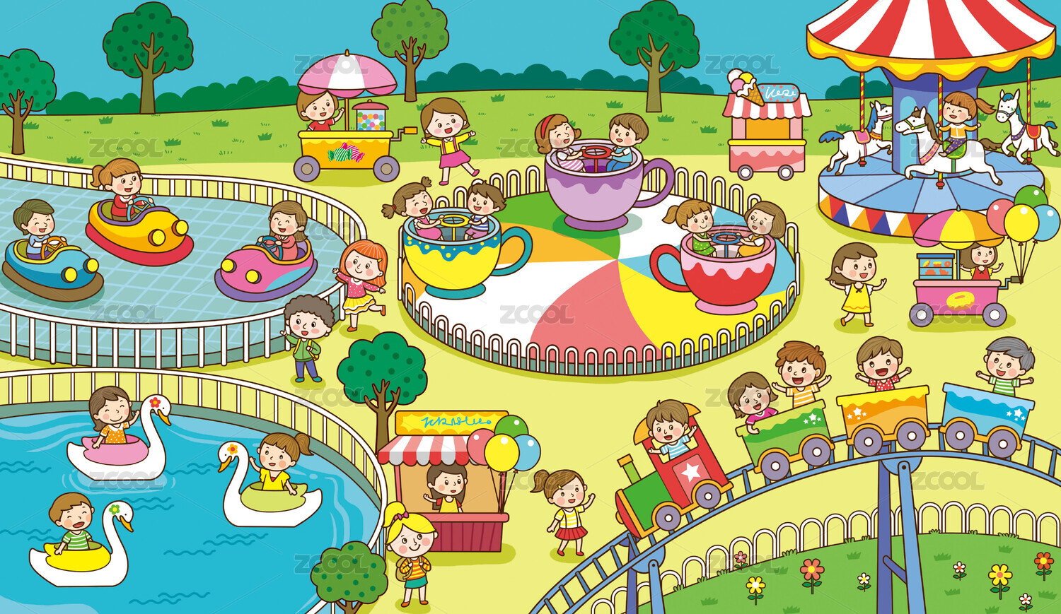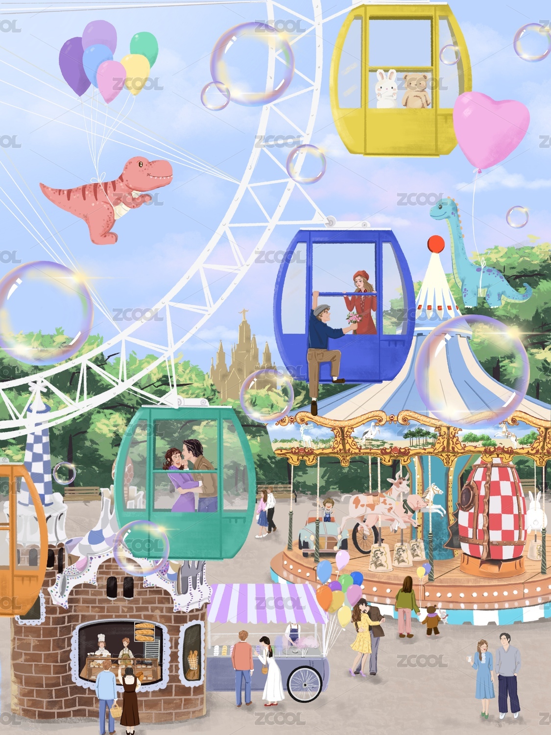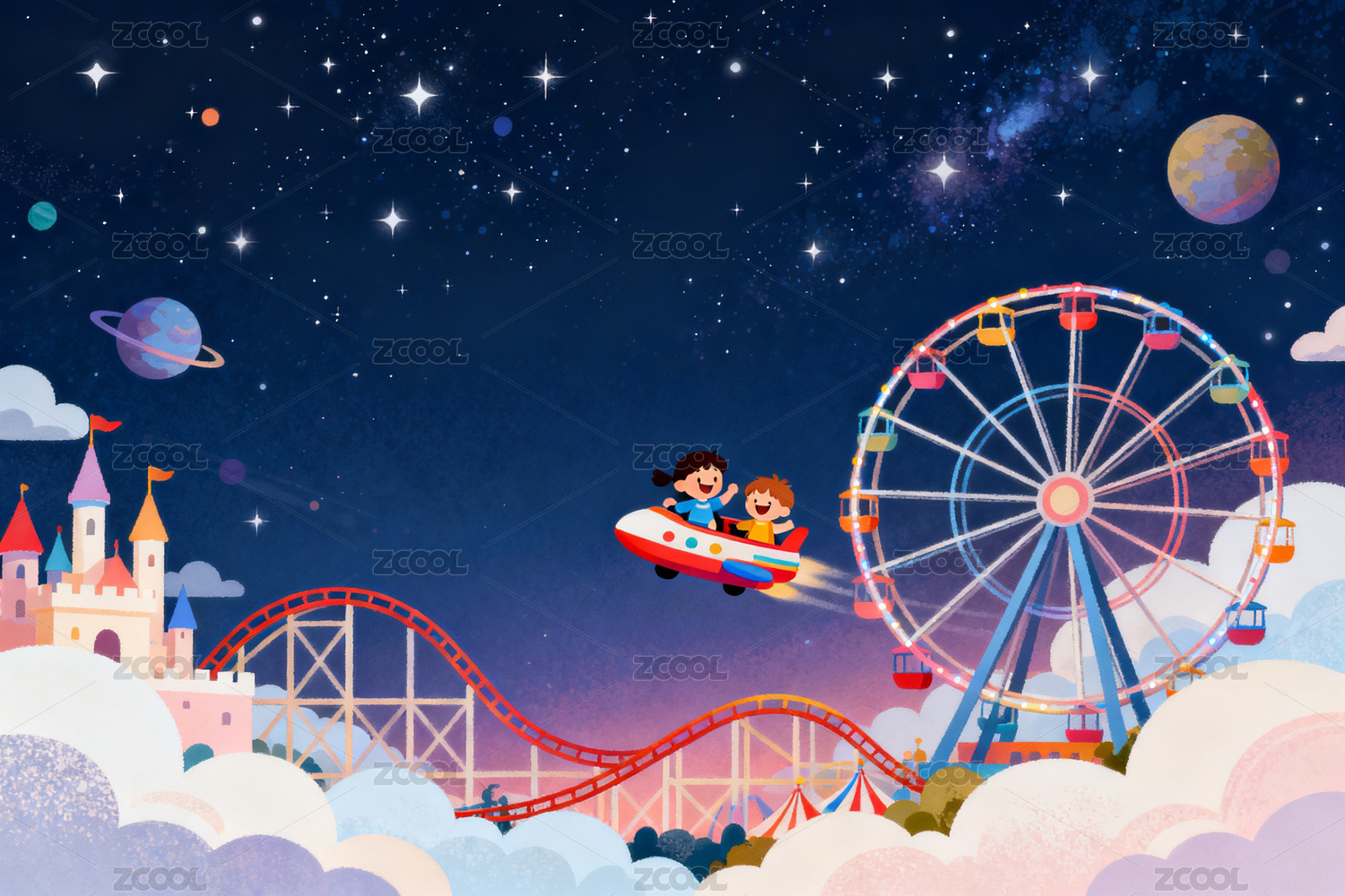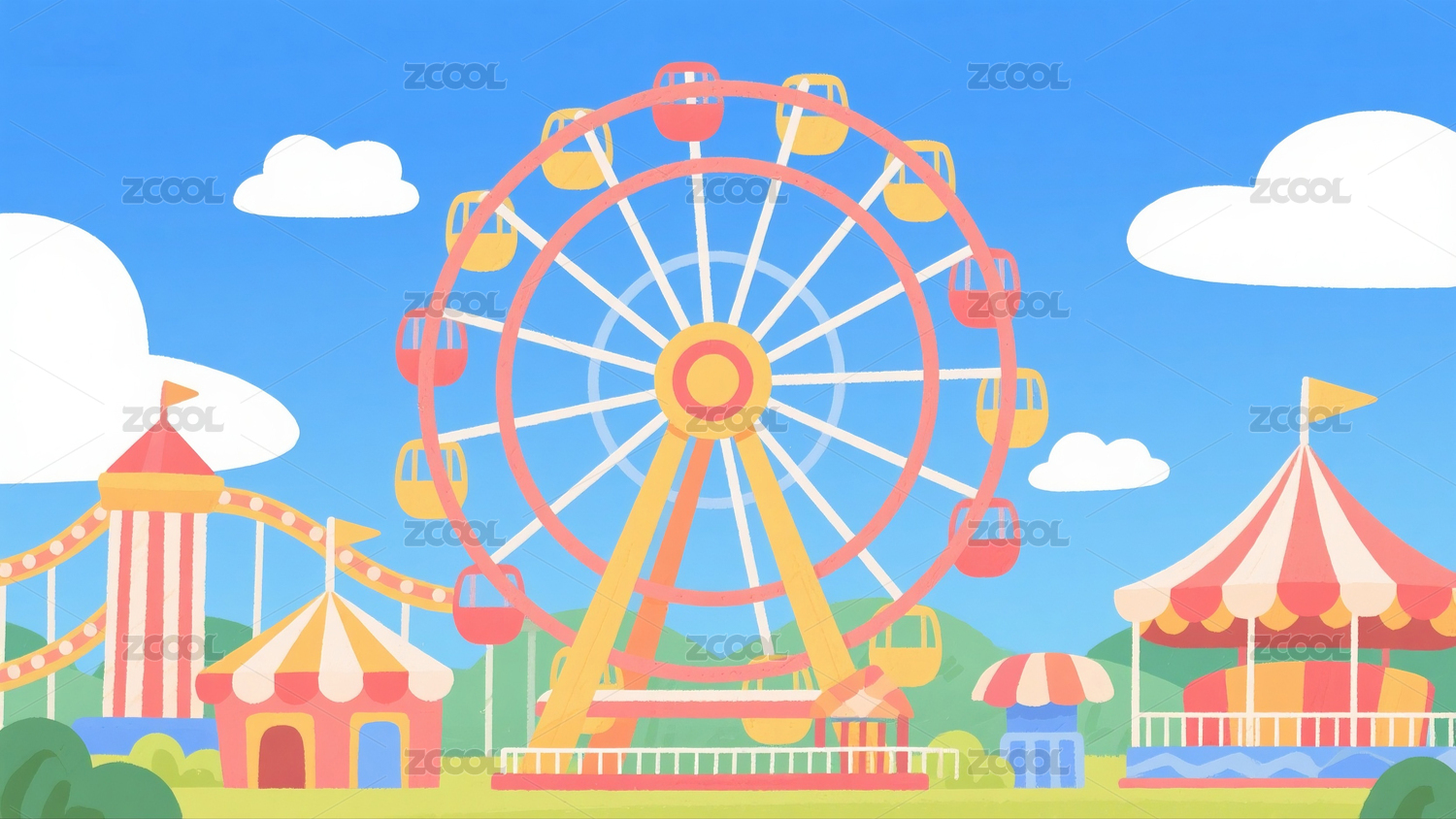 儿童节,节日,快乐,游乐场,旋转木马,过山车,人物,摩天轮,背景,素材