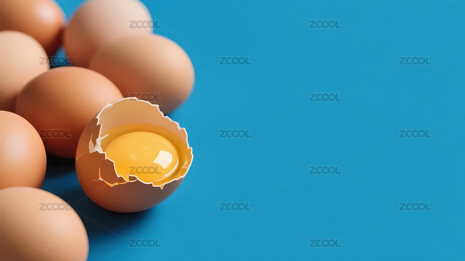 蓝色背景上蓝色鸡蛋的特写高清图片