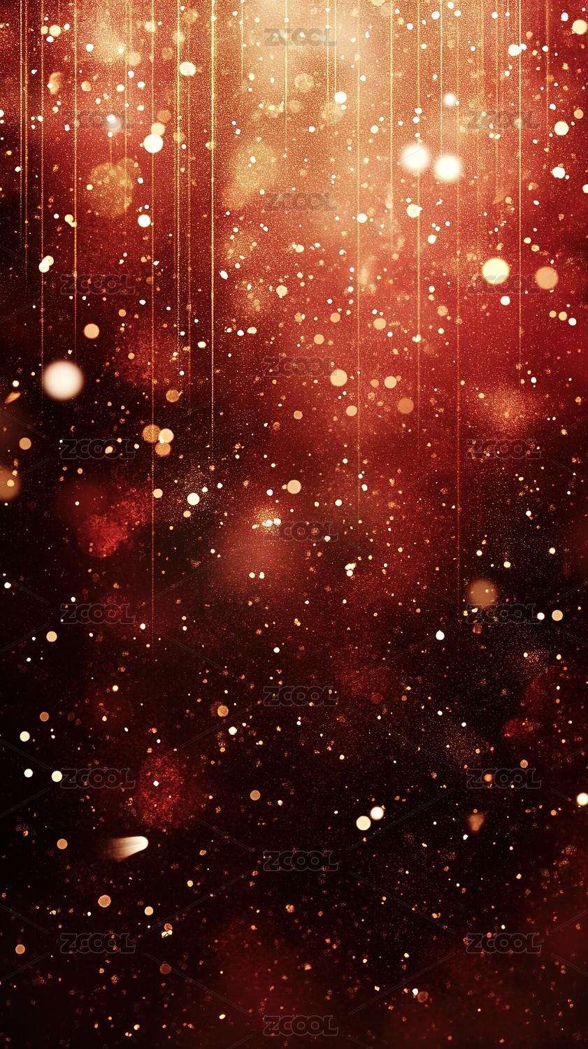 红色背景上闪烁着金色的光点