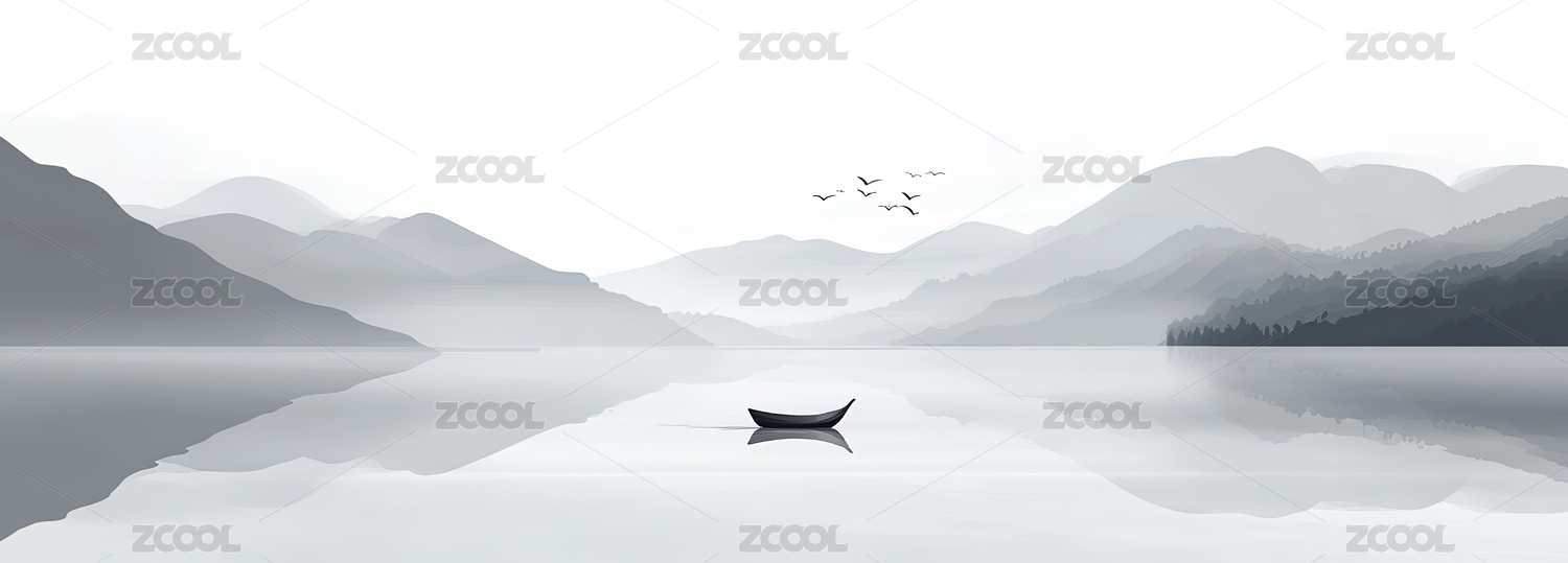 无人,风景,自然美,地形,湖,户外,水墨画,宁静,背景,天空