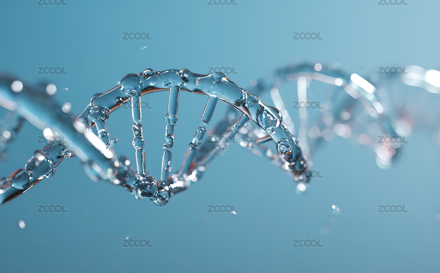 浅蓝背景下透明DNA双螺旋结构