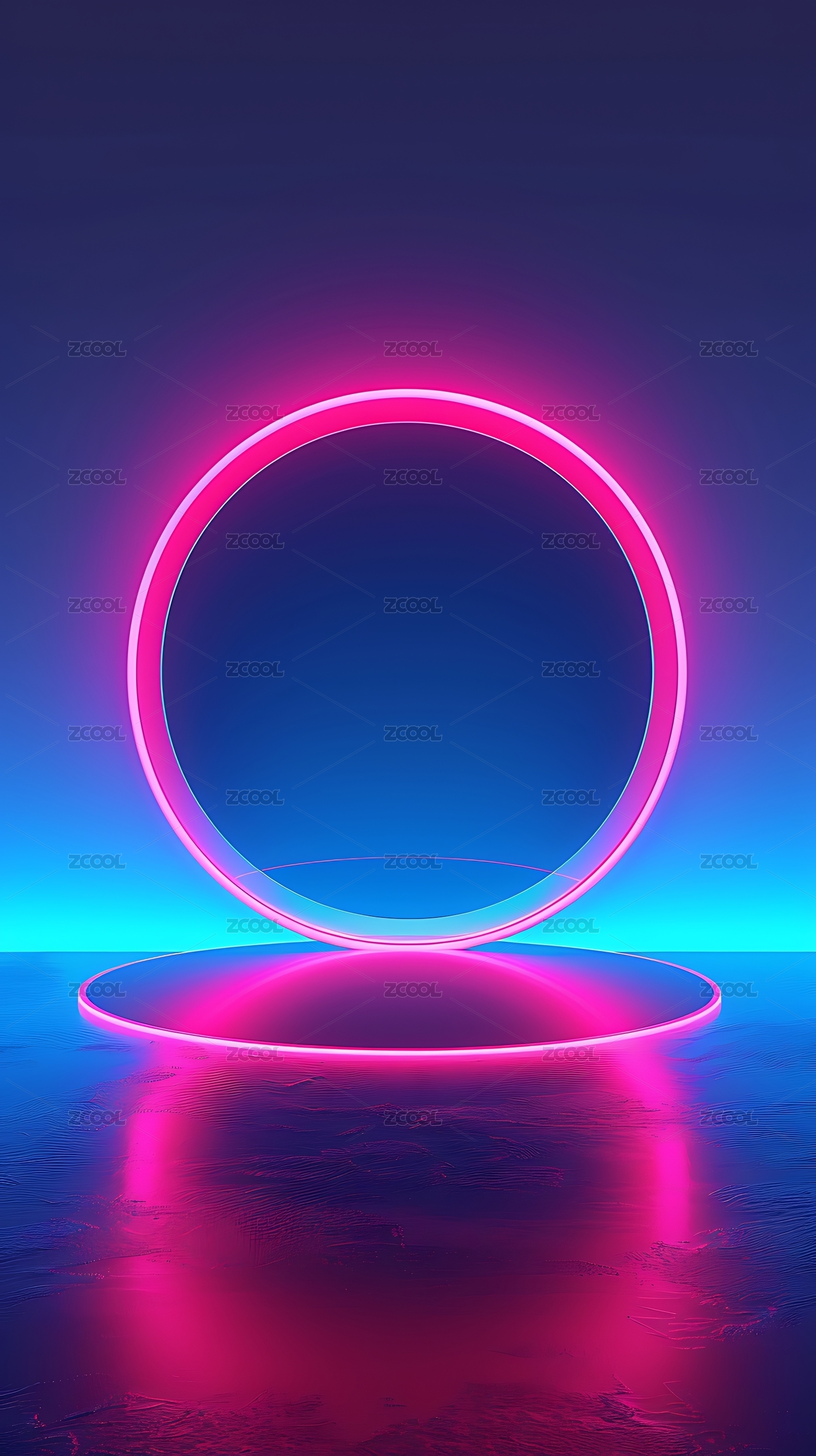 霓虹光环悬浮暗空地面反光