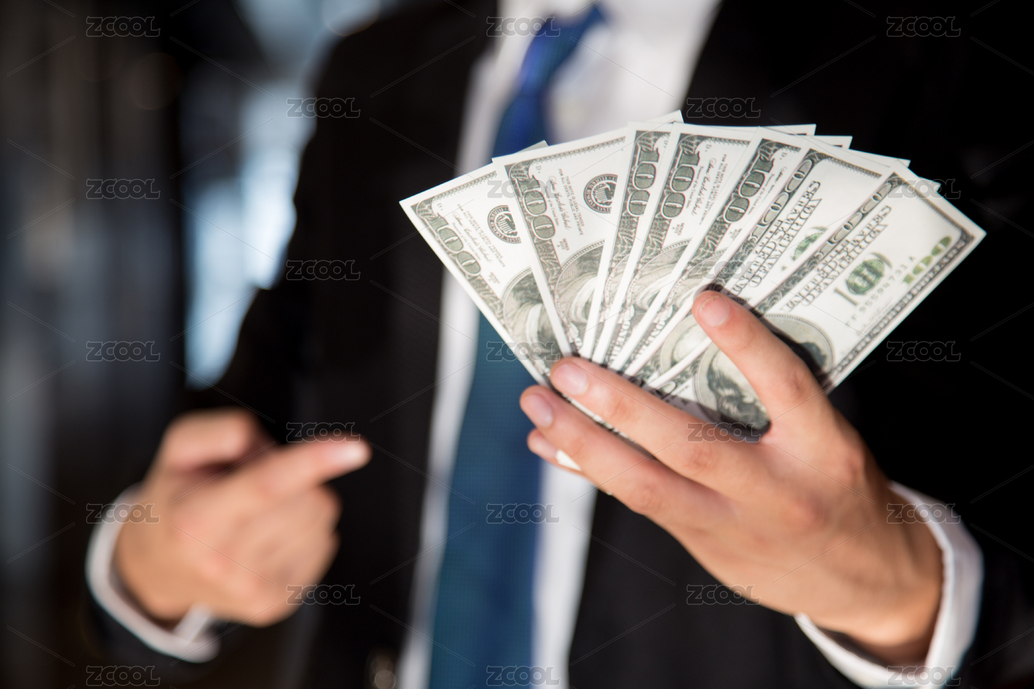 手里拿着一叠美元