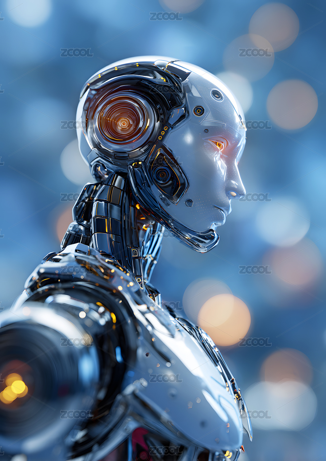 科幻风格智能机器人头部特写