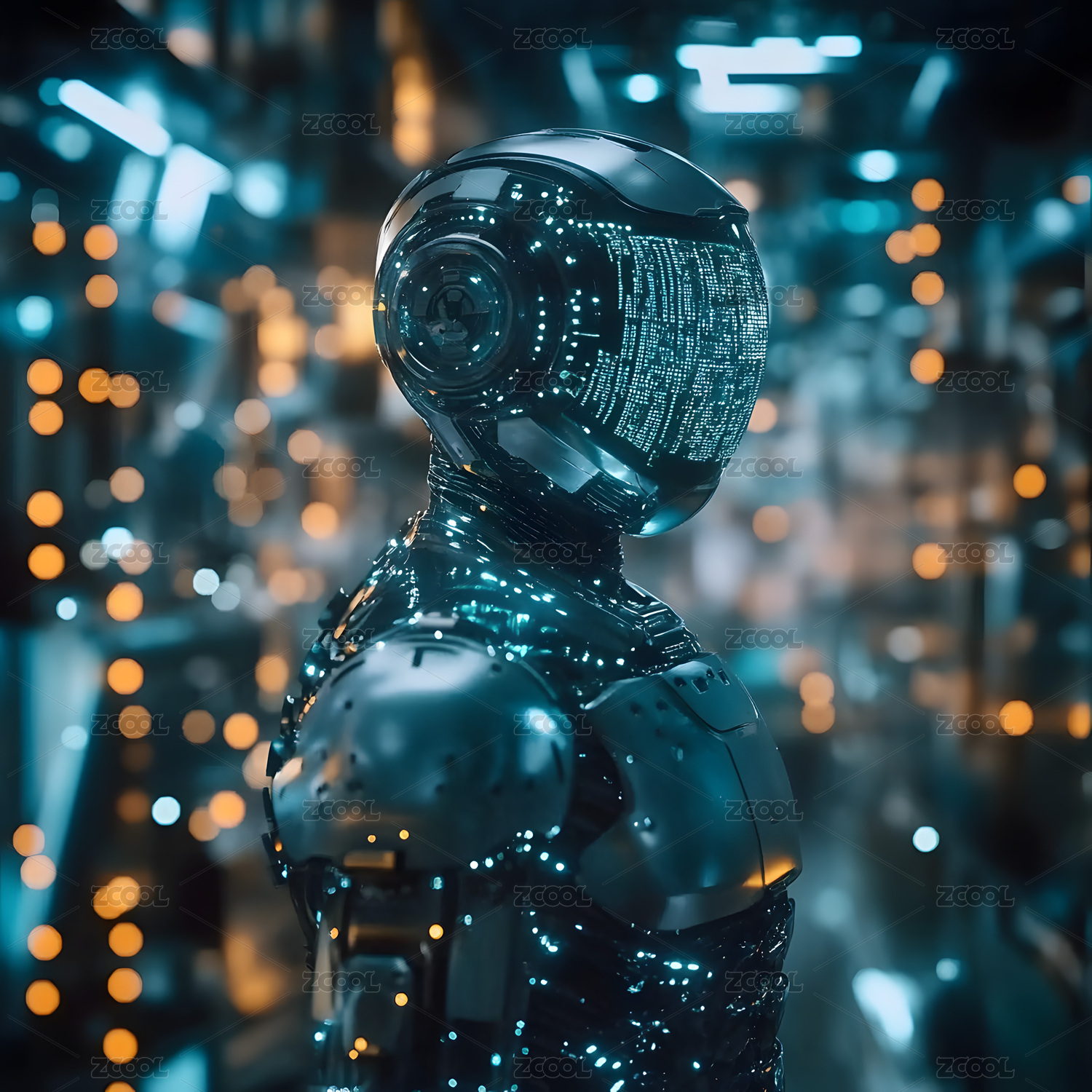 科幻风智能机器人头部特写