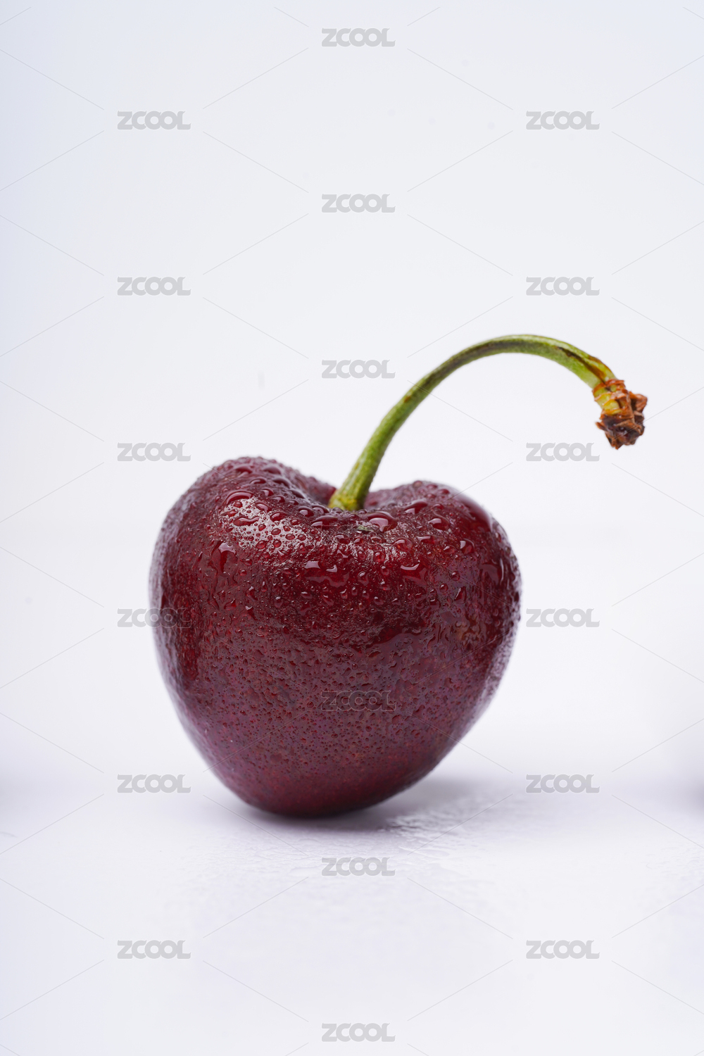 特写一颗饱满新鲜的樱桃,在深色质感的背景里