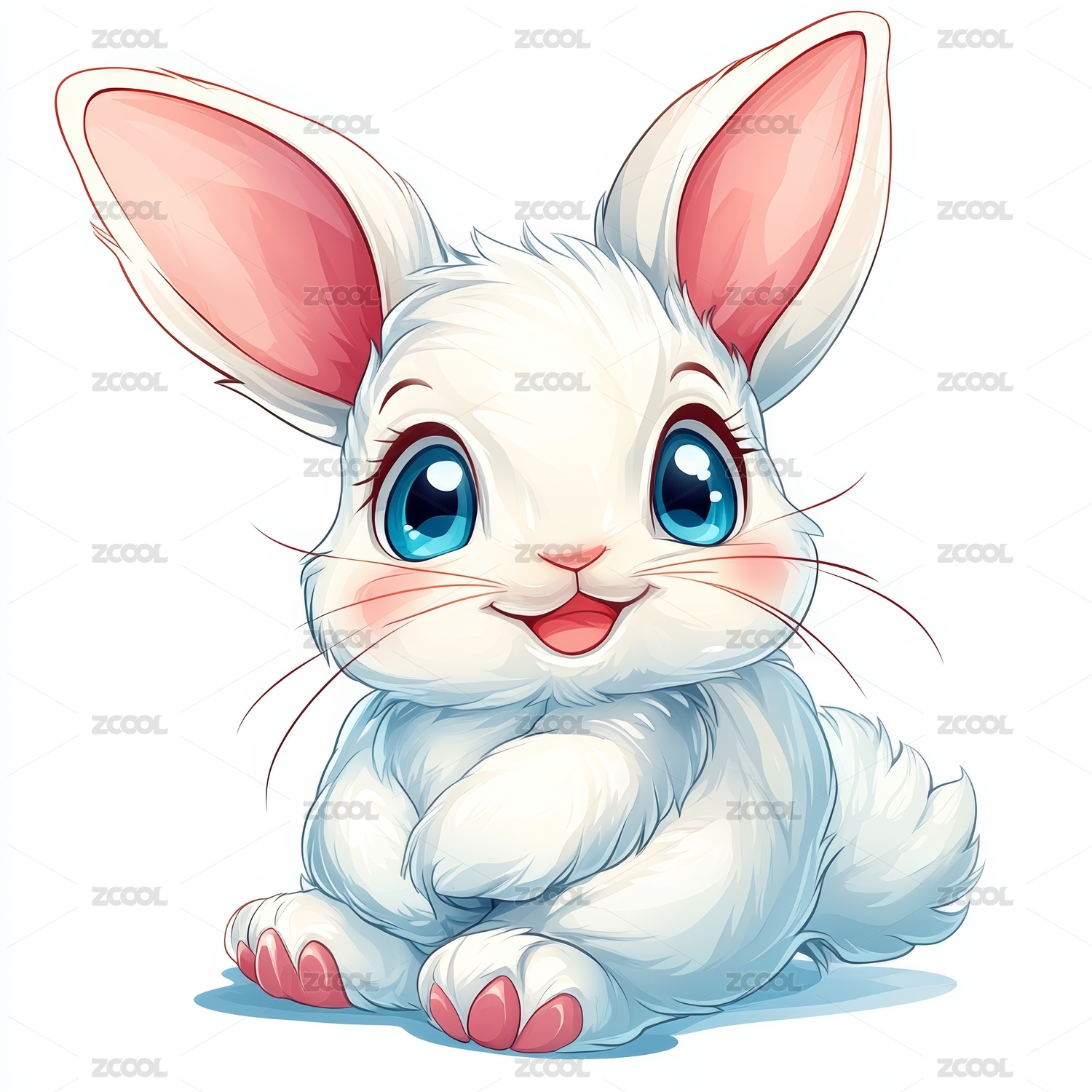卡通,可爱,动物,白色,绘画,艺术,插画,兔子,爱心,粉色