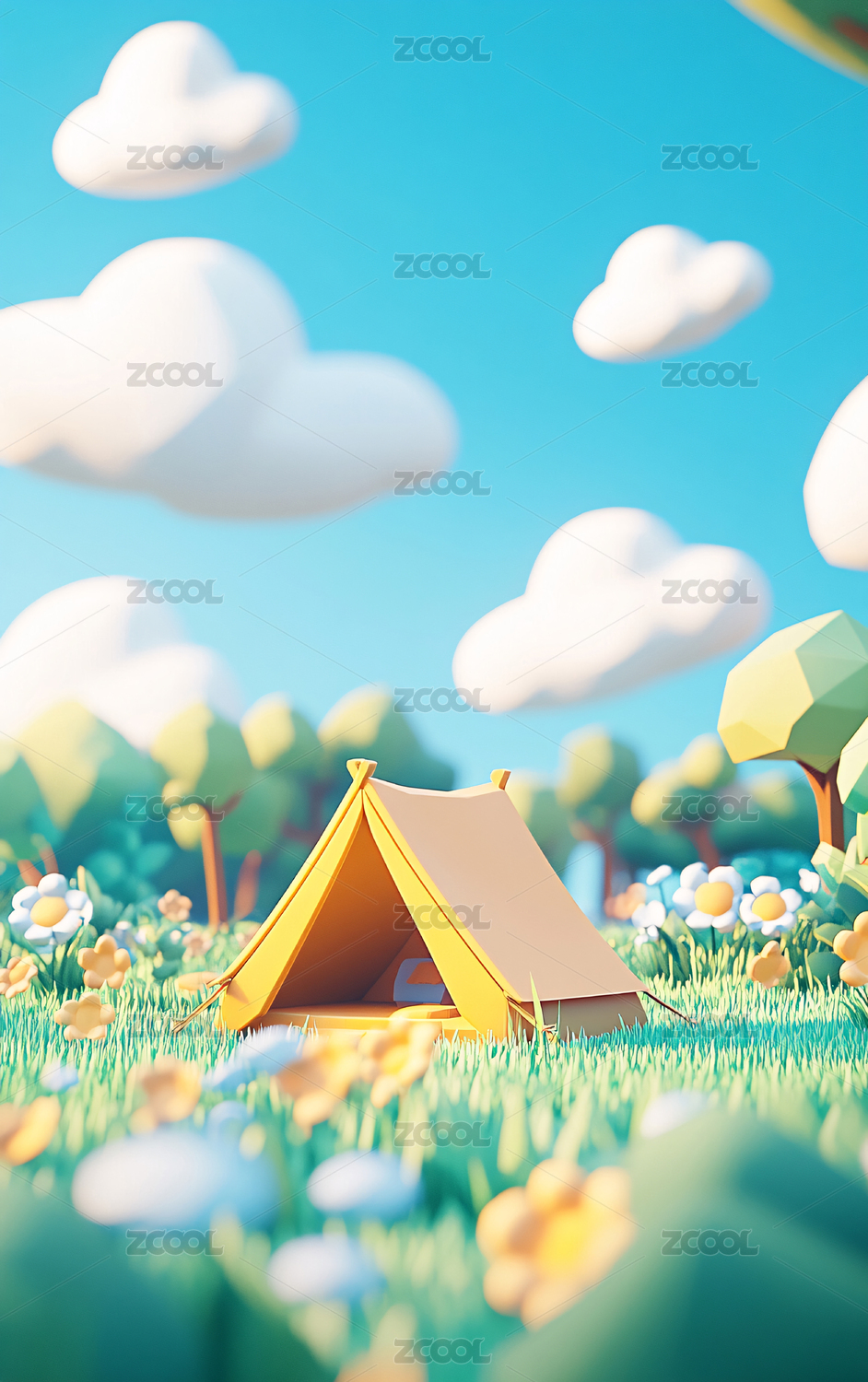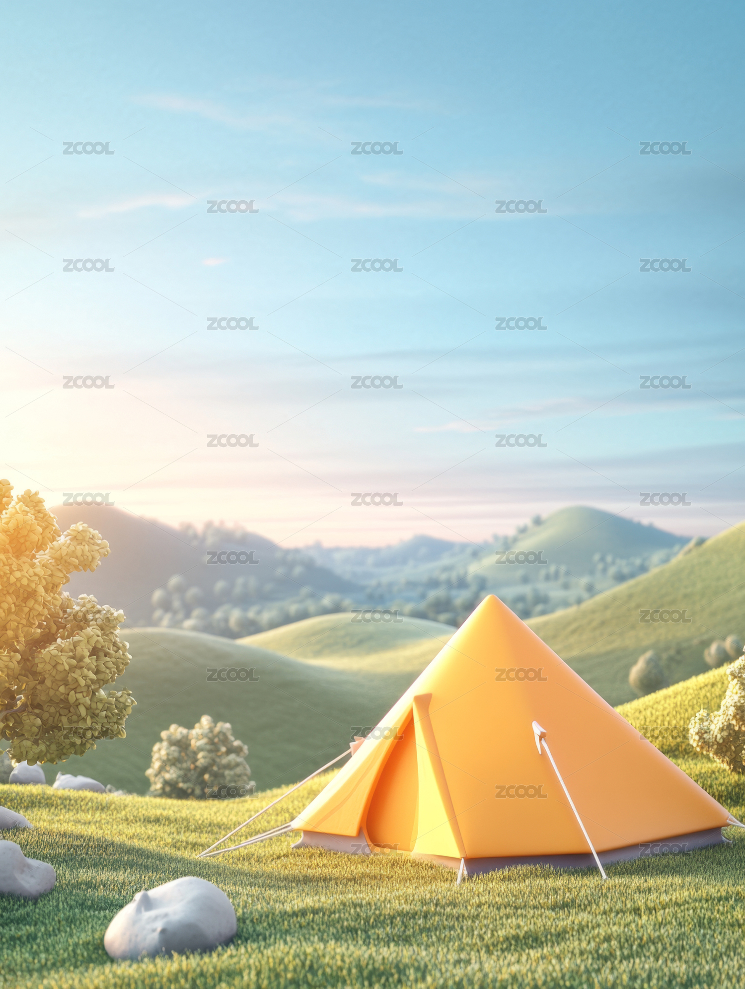 春天露营3D插画