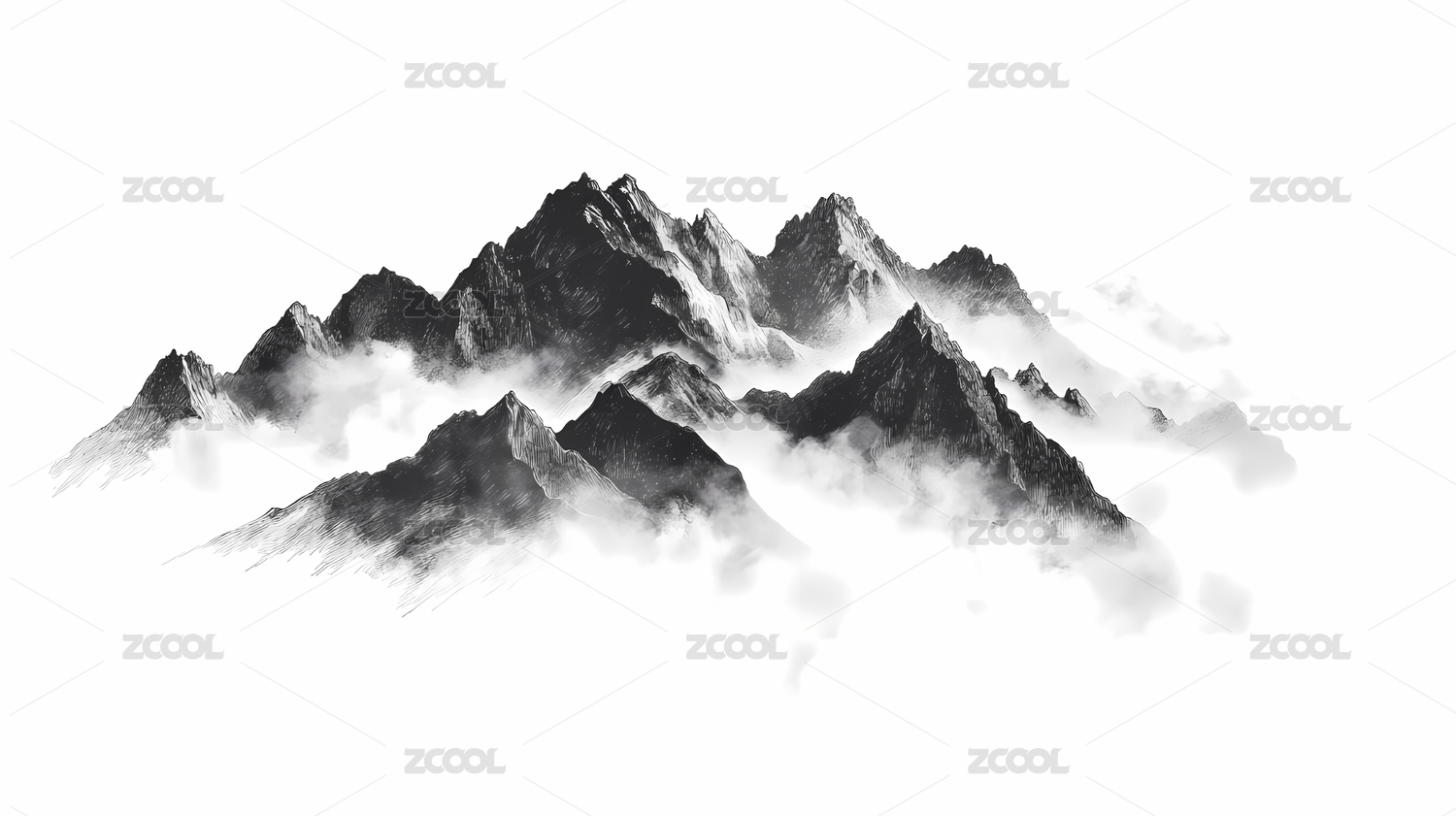 山峰,云雾,黑白,自然,景观,简约,艺术,抽象