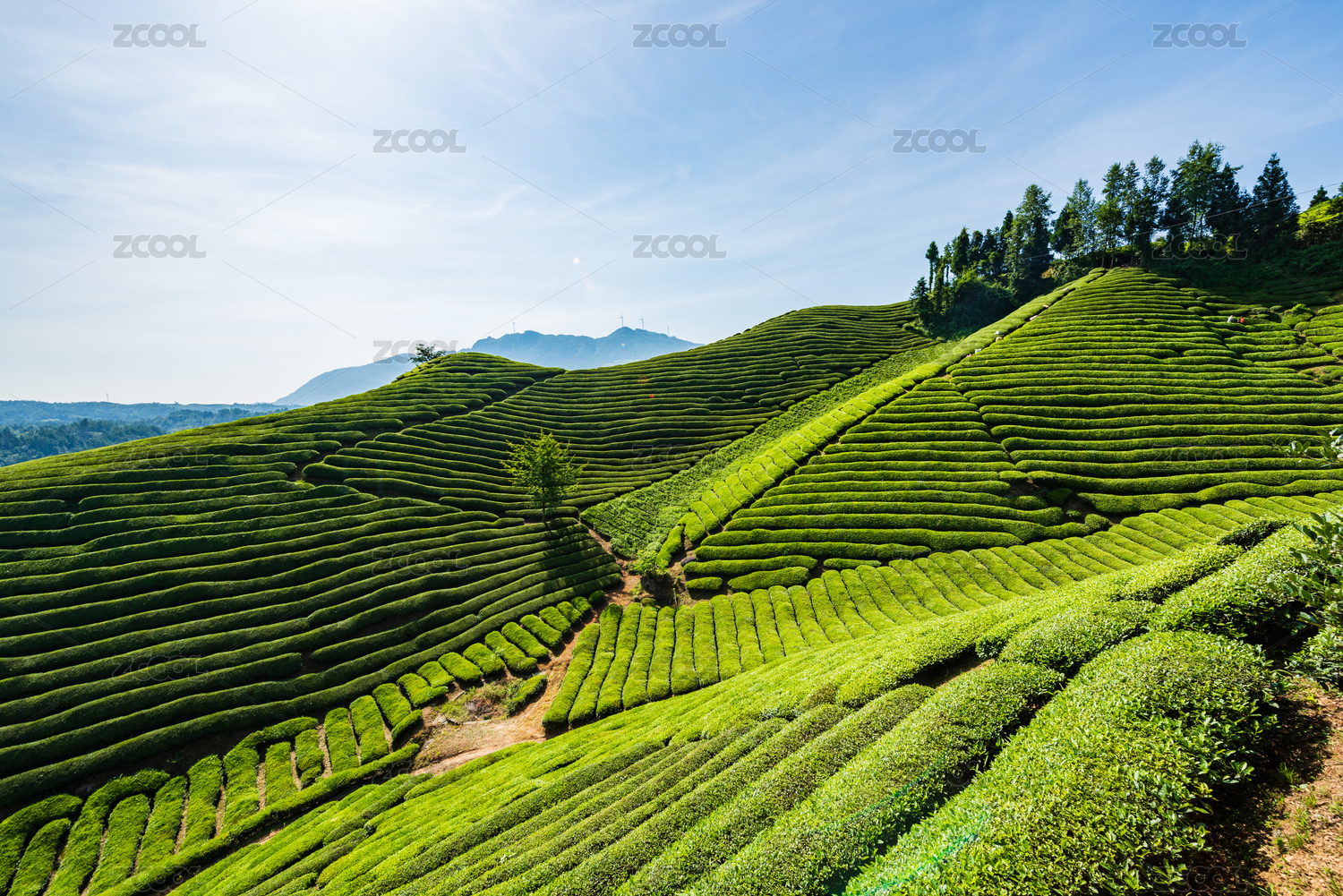 宜宾珙县鹿鸣茶场蜿蜒茶山蓝天白云