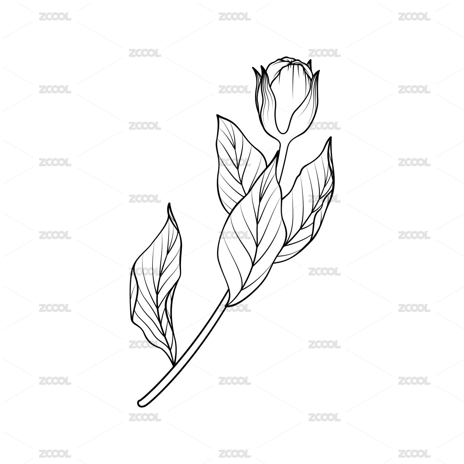 线稿,插画,黑色,植物,自然,花卉,风格,元素,素材,四季