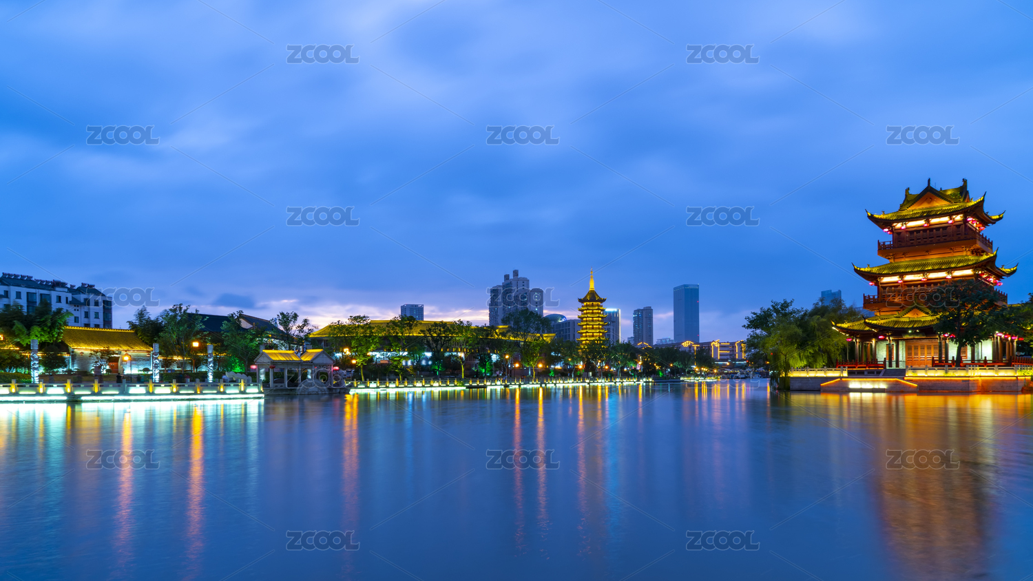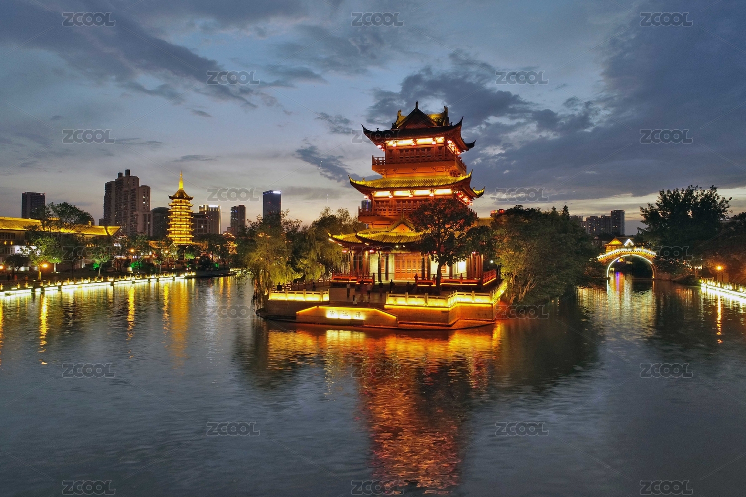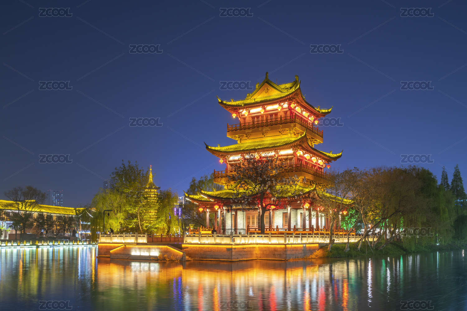 江苏淮安市里运河历史长廊清江浦楼航拍夜景