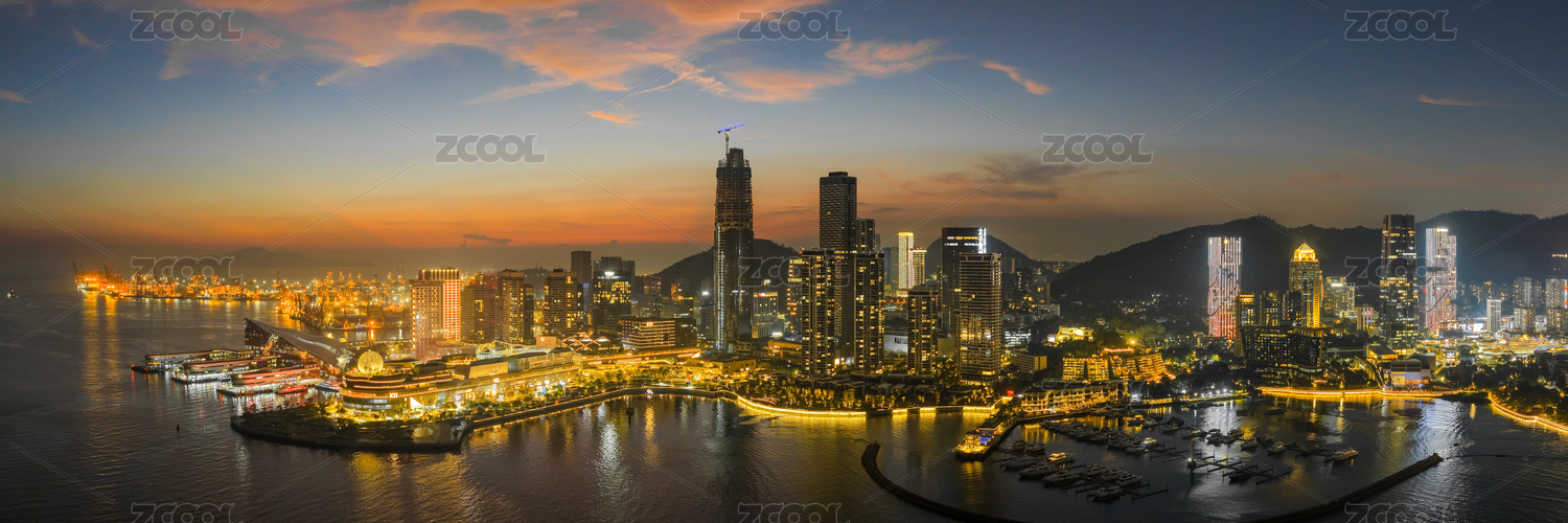 航拍青岛湾城市景观夜景大画幅