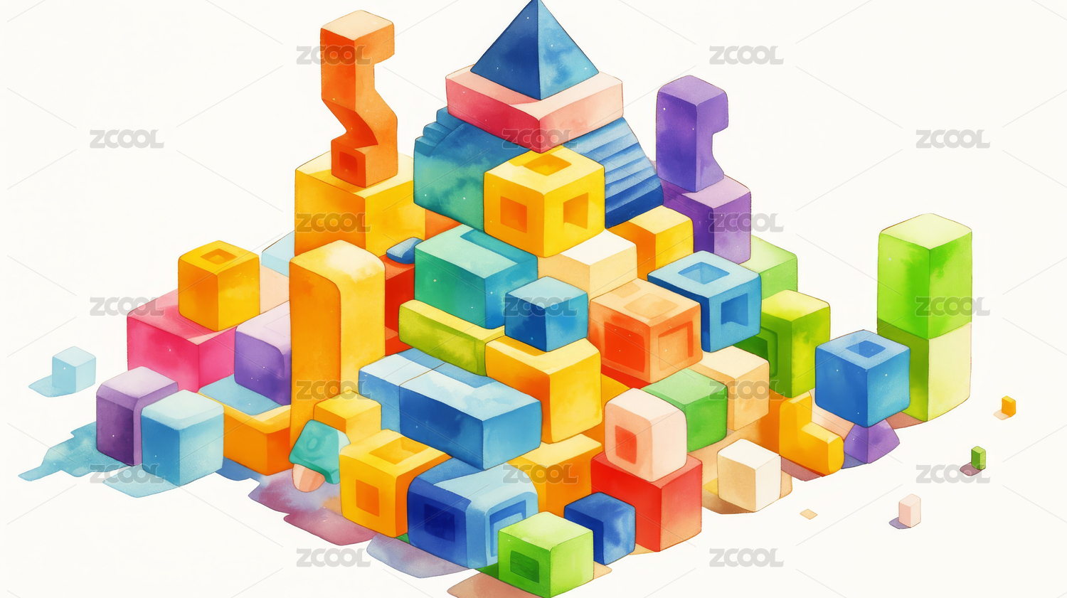 彩色积木堆成金字塔形状