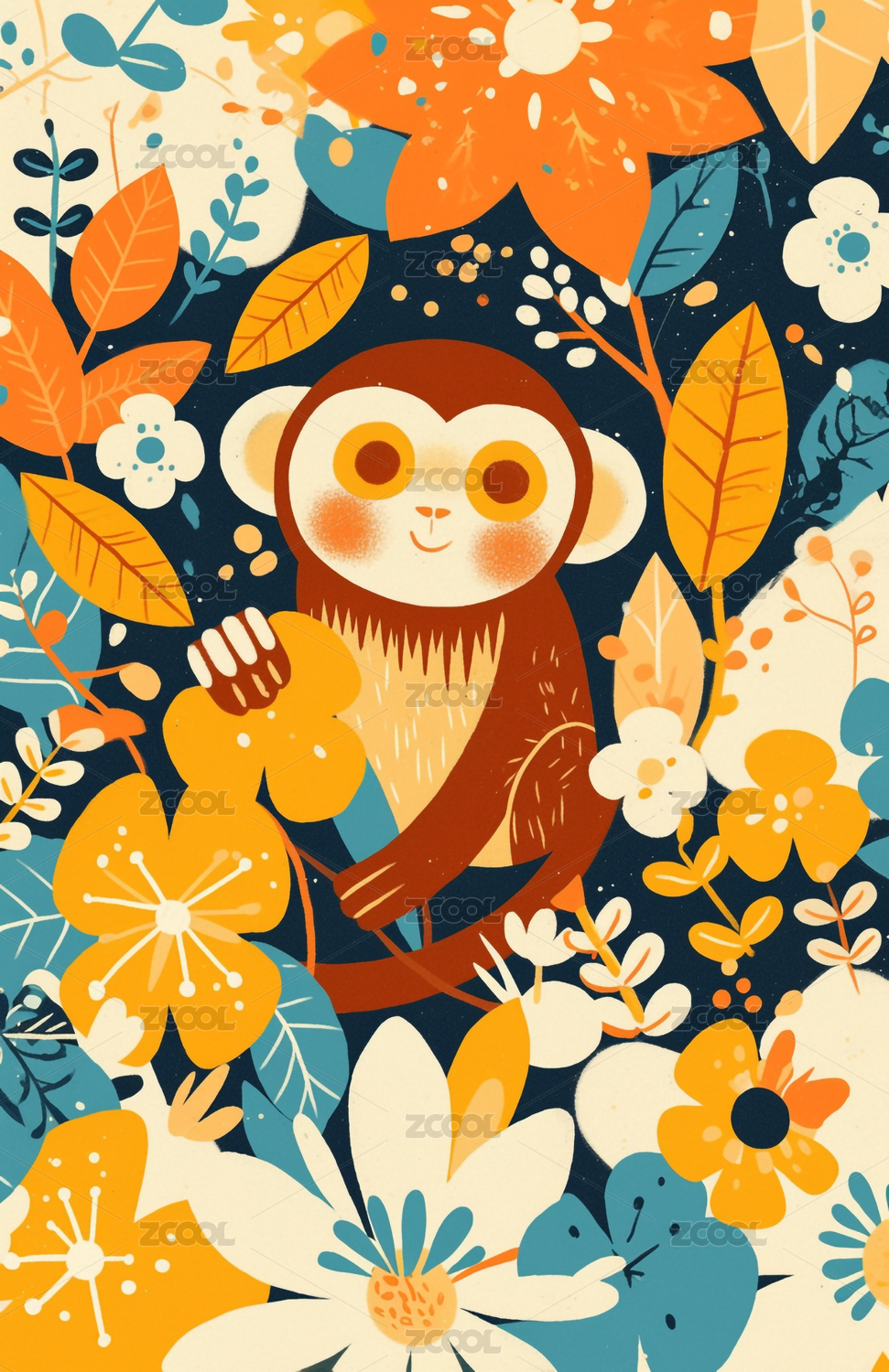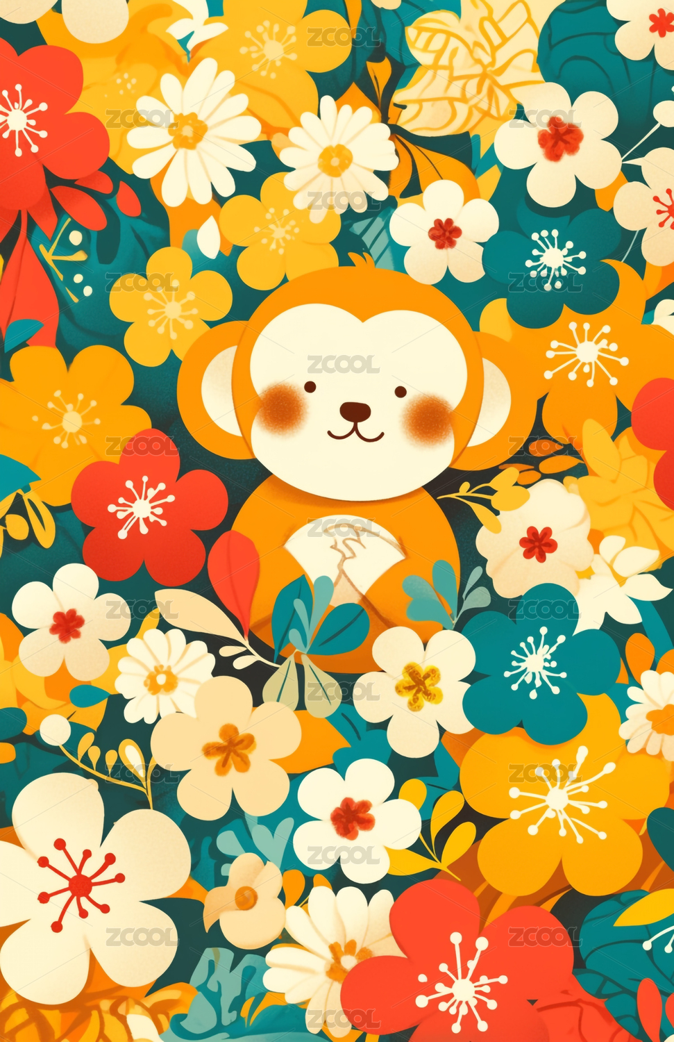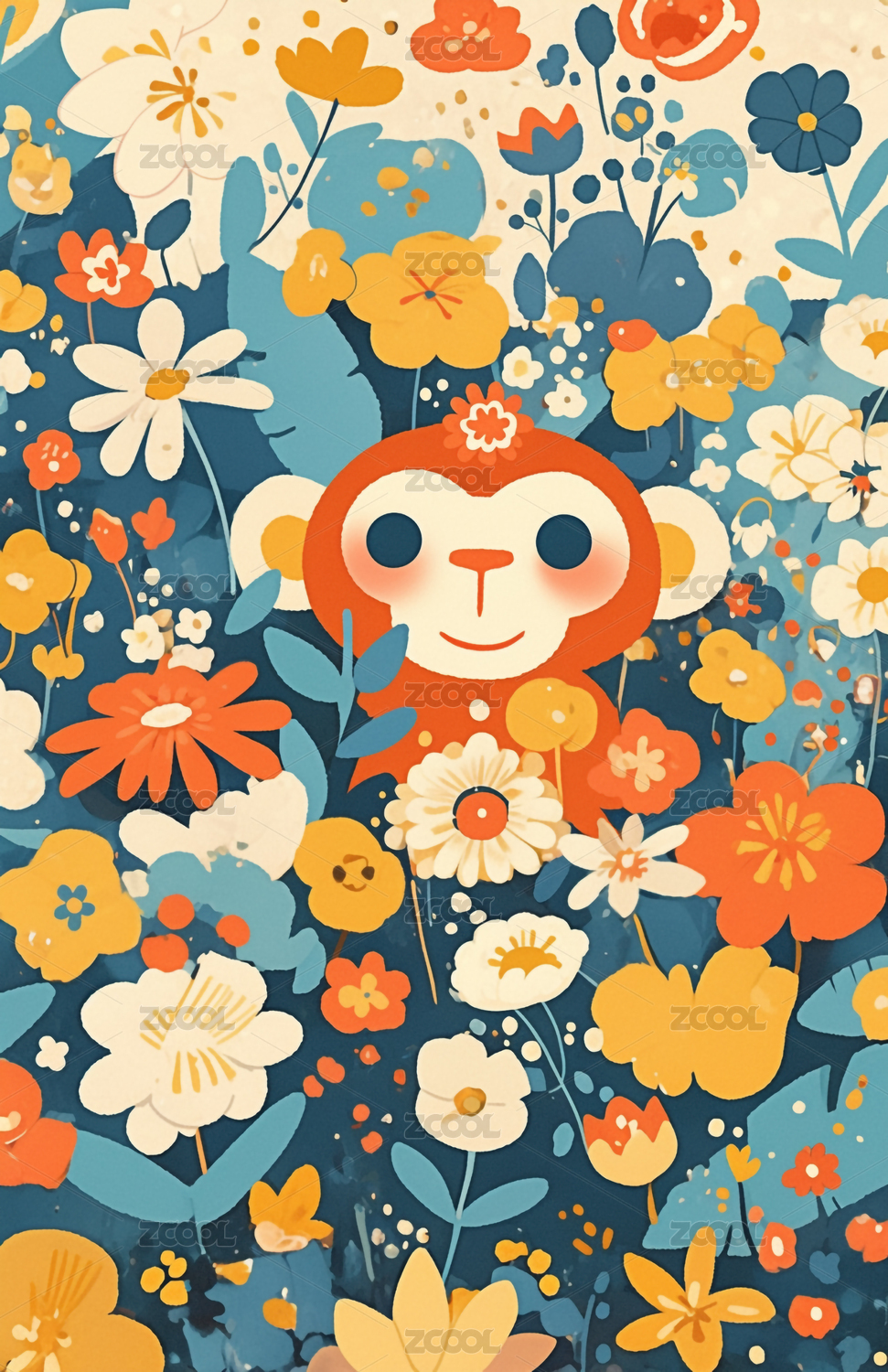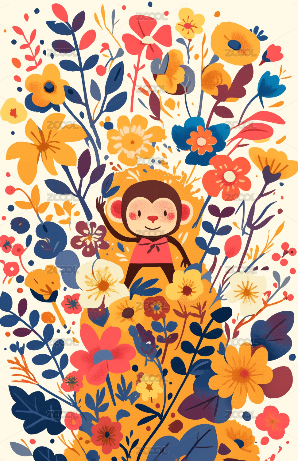 猴子,生肖,猴年,花簇,野外,吉祥物,可爱,拟人,花卉,野生