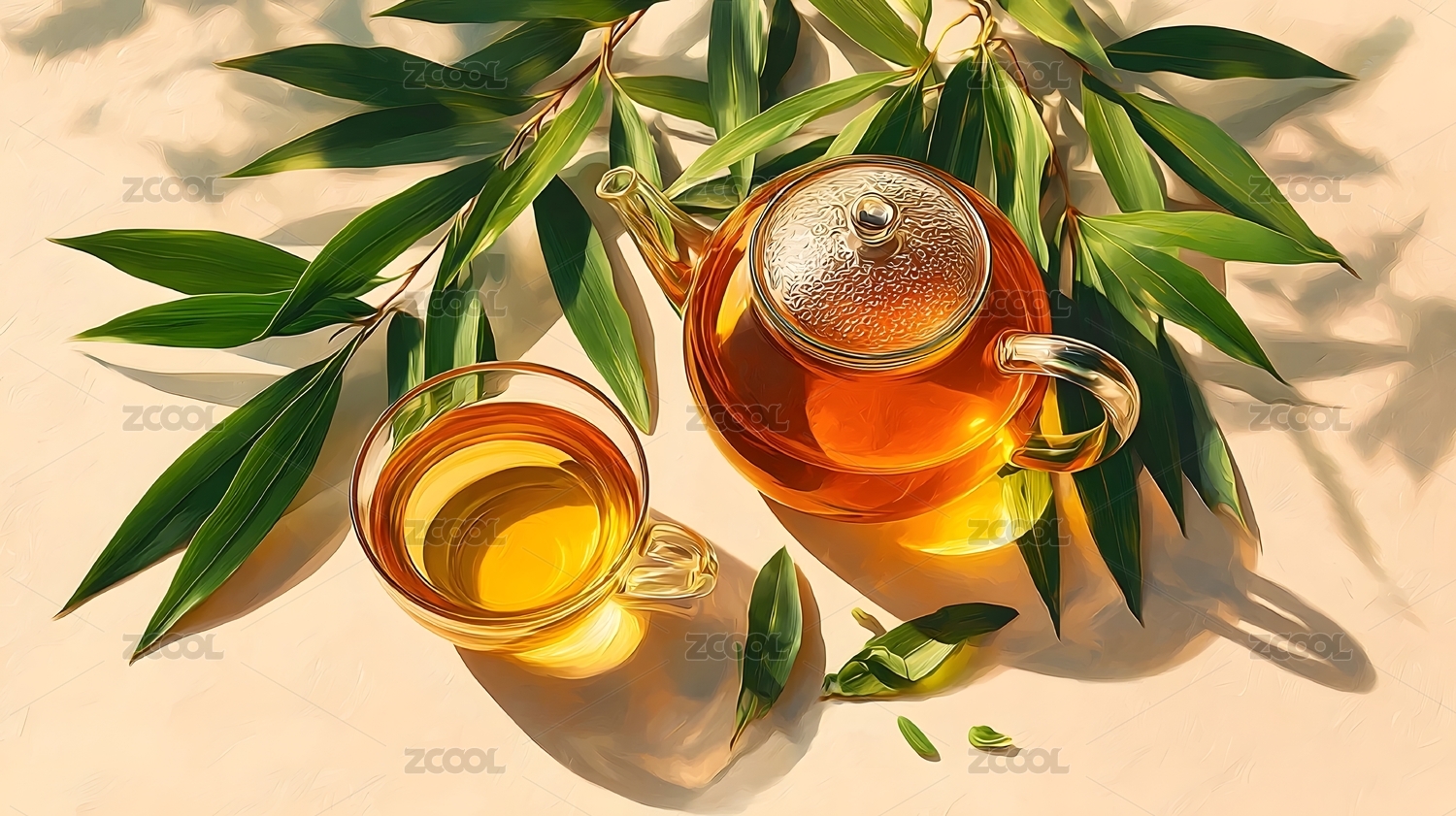 清新,绿茶,抹茶,茶香,茶叶,竹叶,竹子,茶杯,茶具,背景