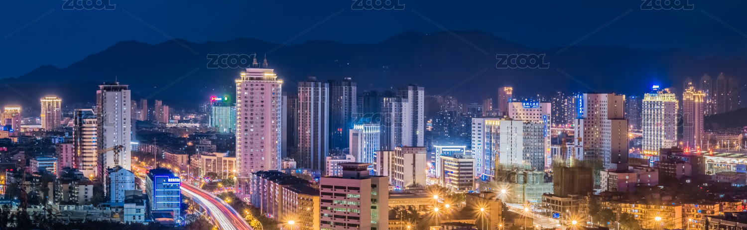 中国福建省福州市城区高楼建筑夜景灯光环境景观