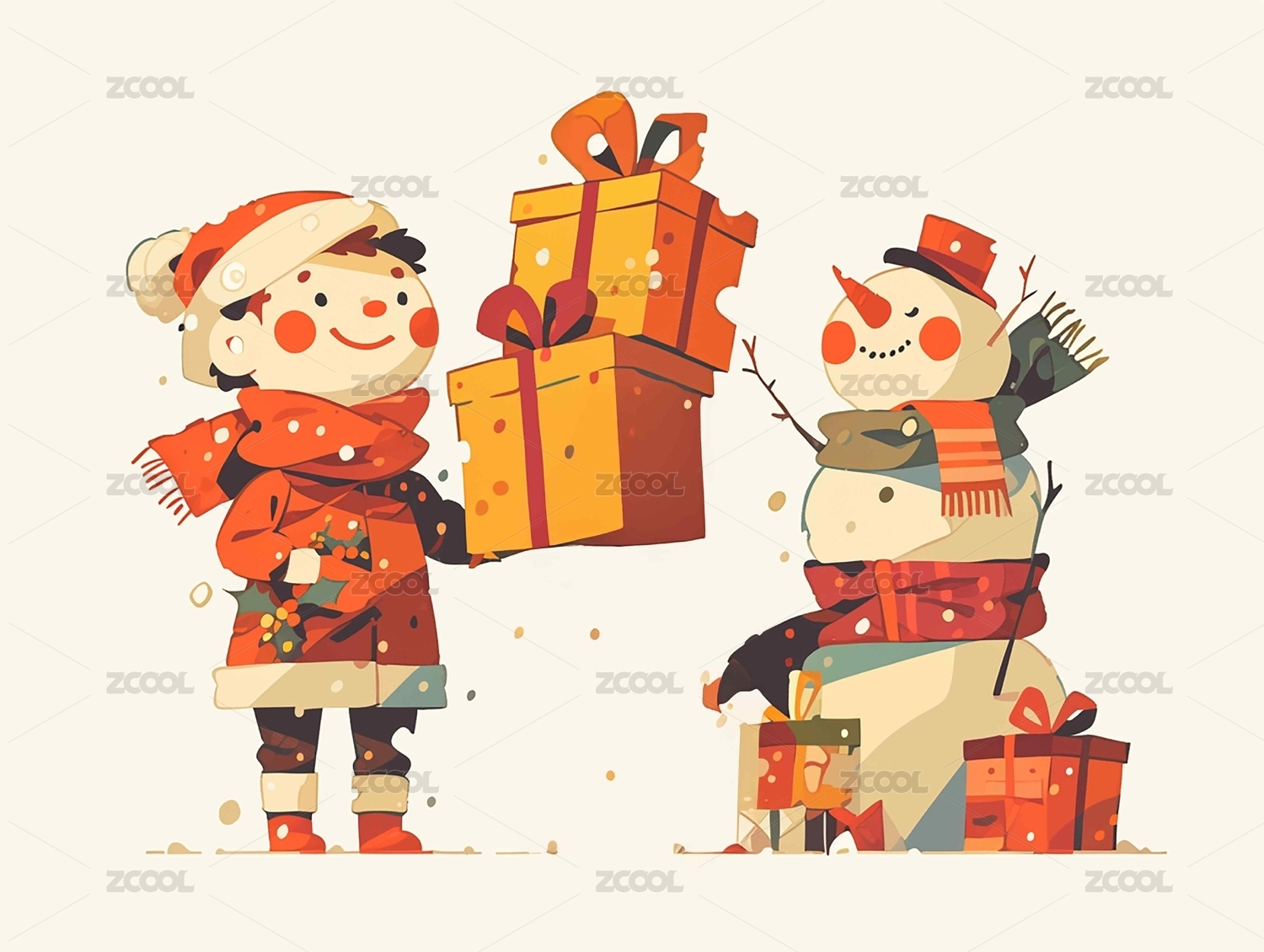 圣诞节快乐雪人送礼物