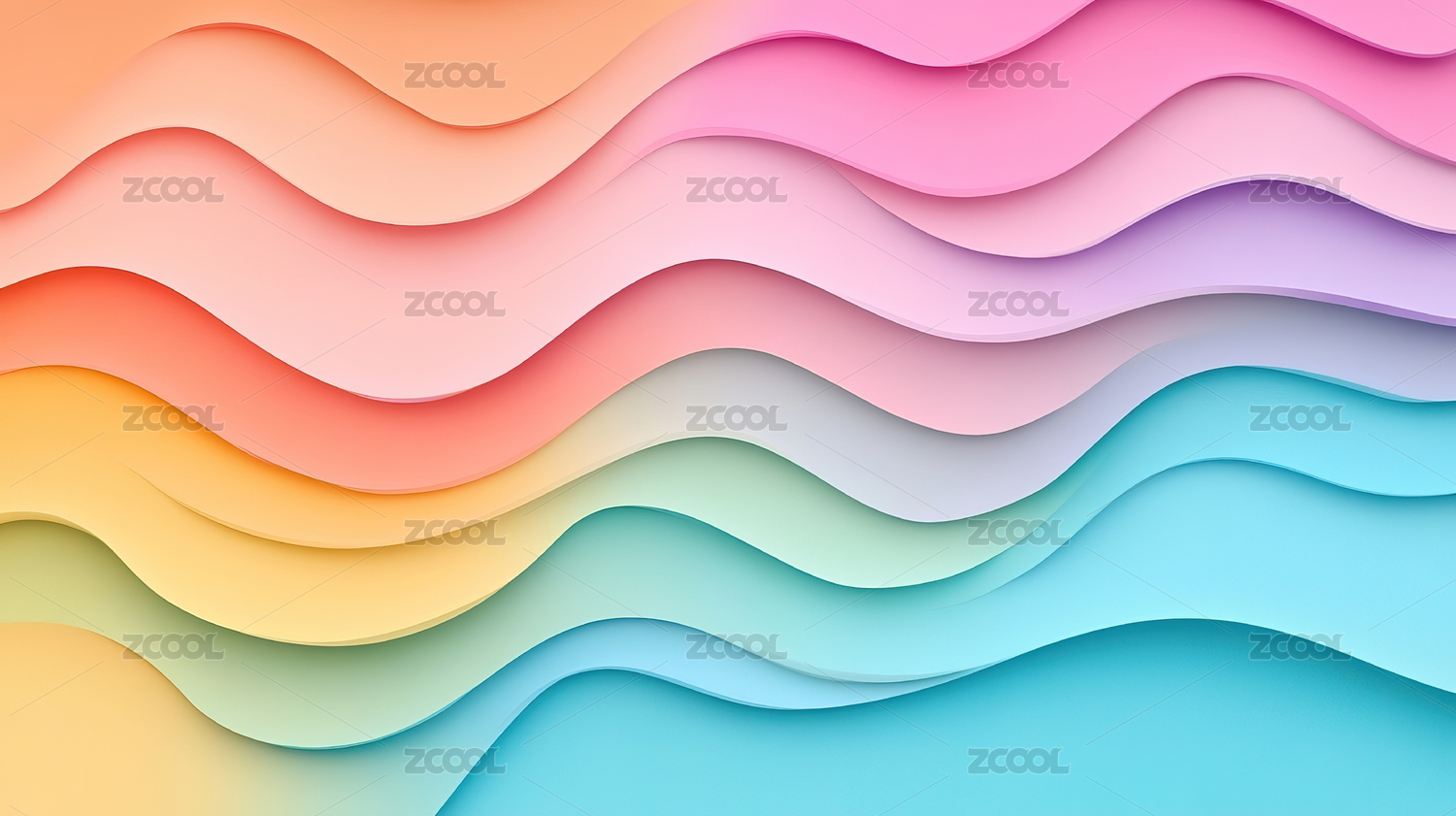 柔和色彩的纸张层叠形成波浪状的抽象背景图