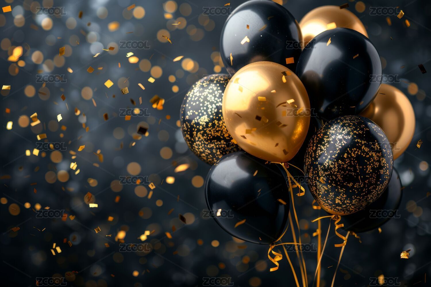 黑金气球与庆祝氛围的节日感