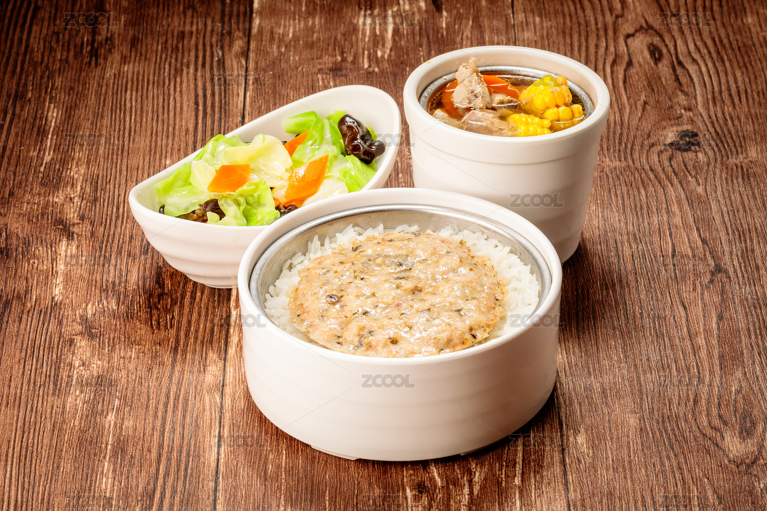 快餐,蒸饭,蔬菜,大白菜,红萝卜,木耳,饭,套餐,汤,老火汤