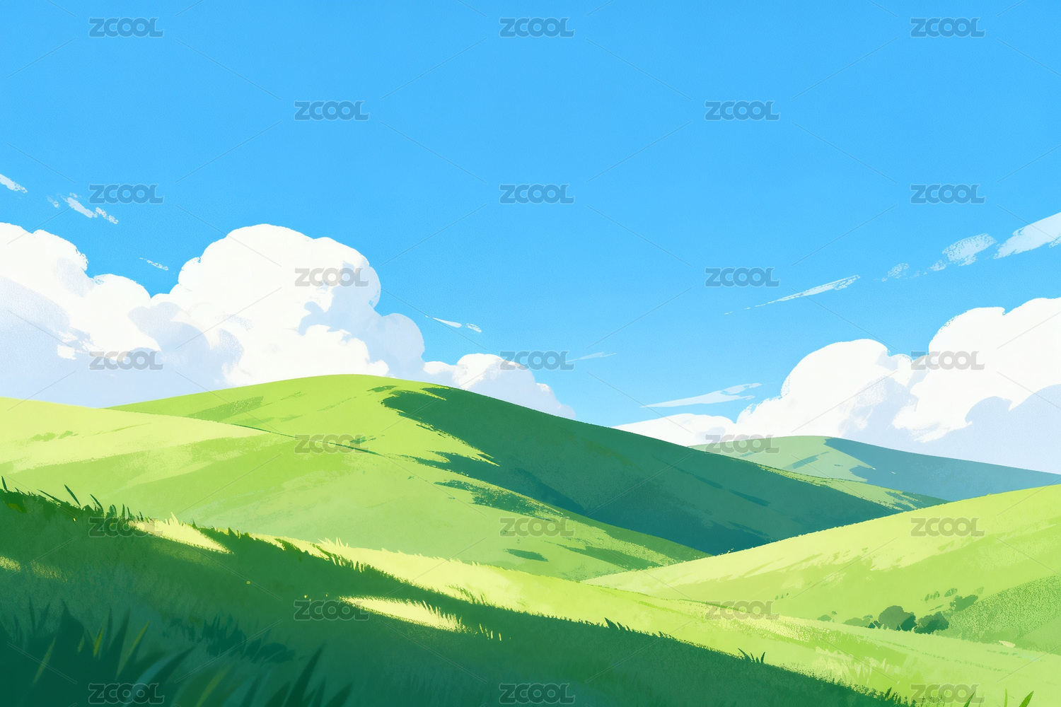 草地风景蓝天白云插画