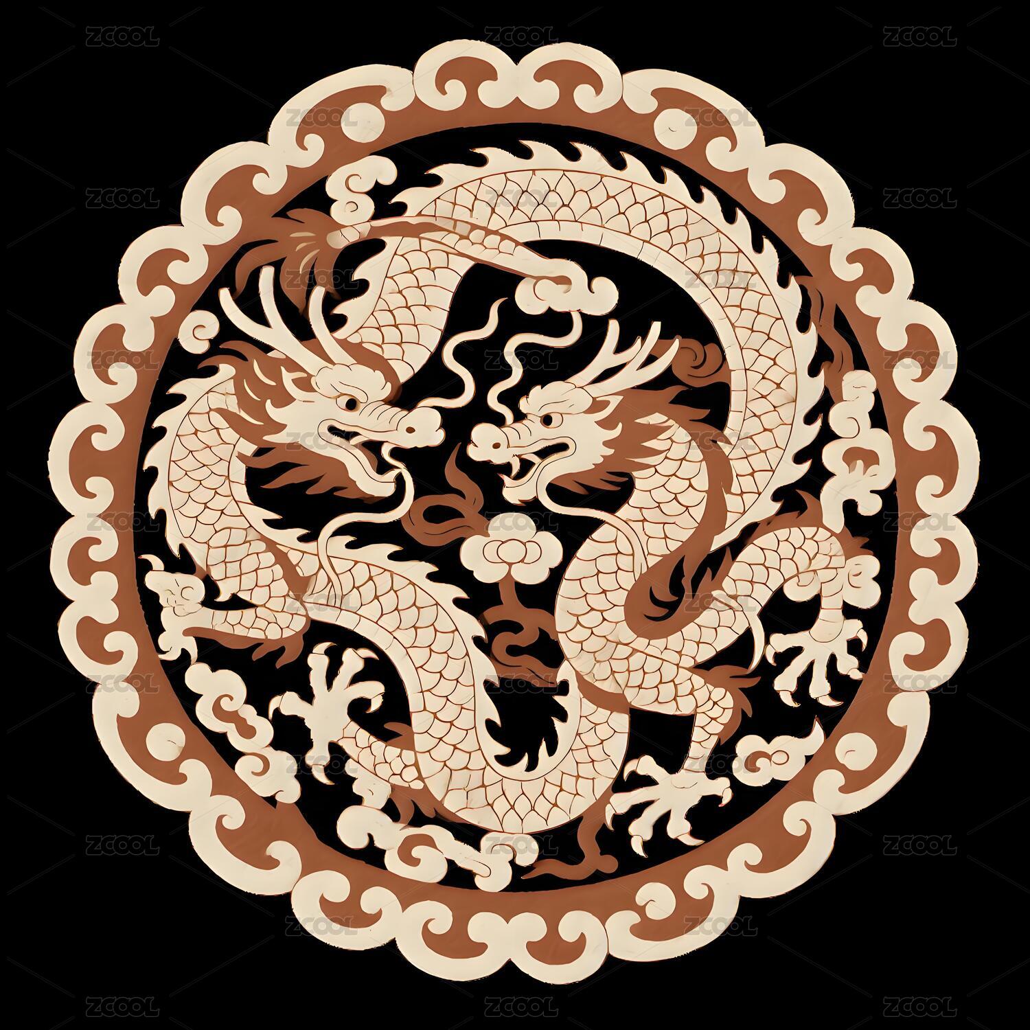 中式纹样中国龙纹饰吉祥图案双龙戏珠剪纸