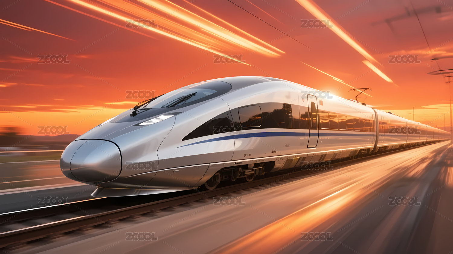 银色高铁日落景