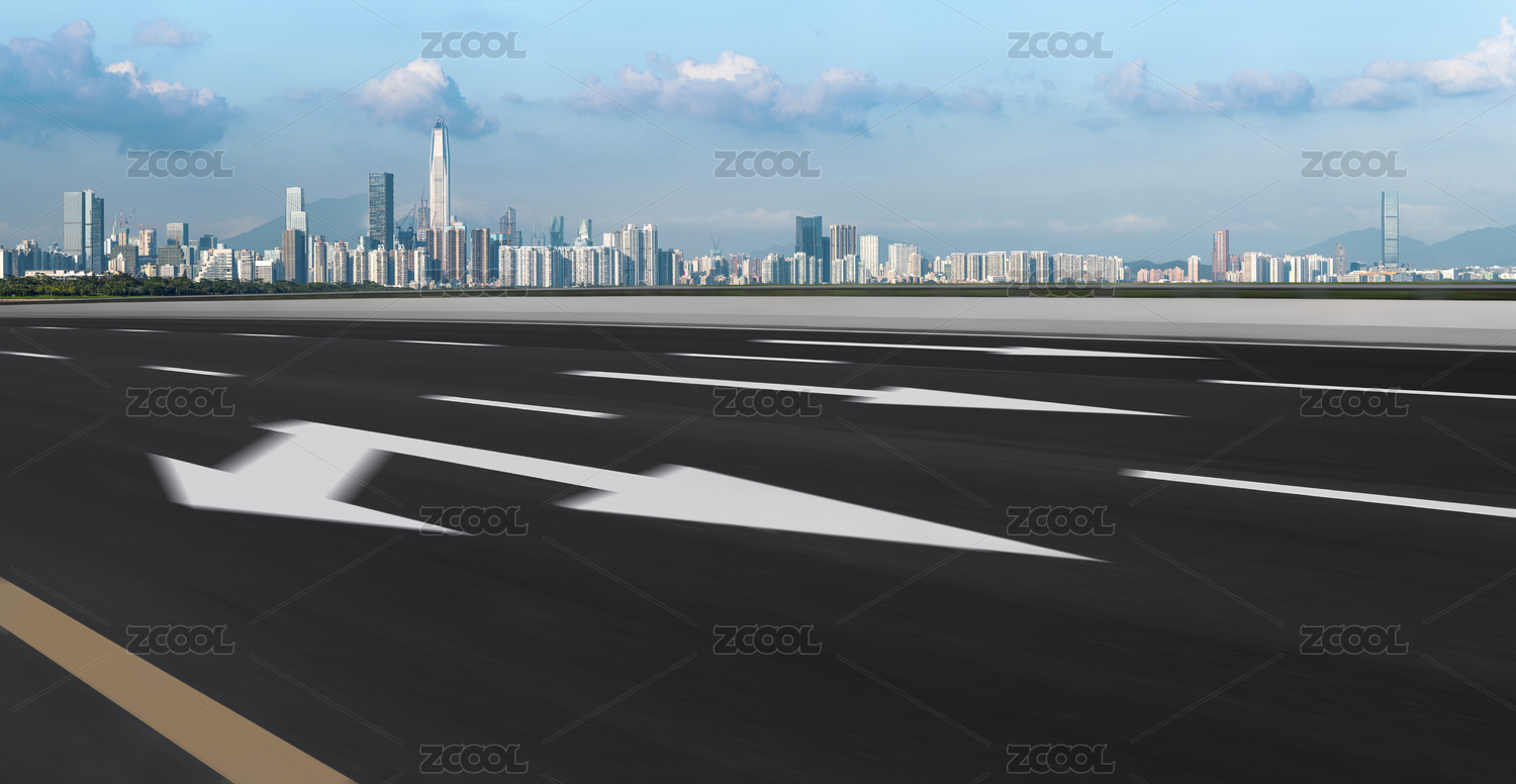 中国广东深圳市区城市天际线和空白无人的机动车道