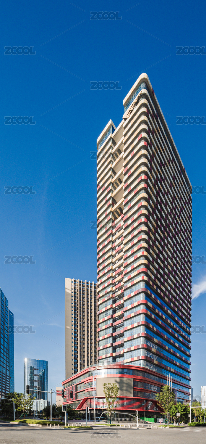 仰视现代建筑办公楼和城市广场街道