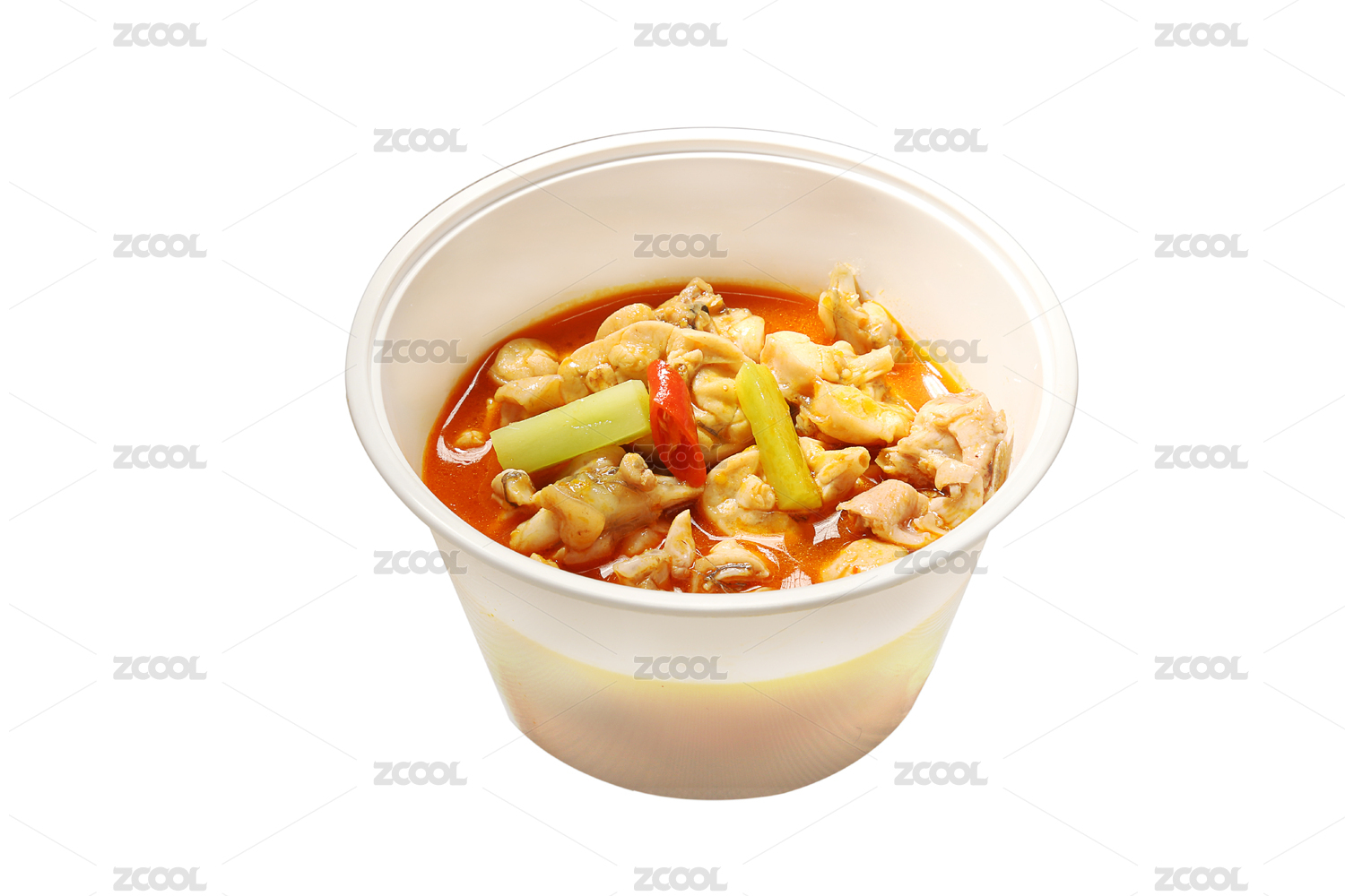 白色背景上白色打包盒中的牛蛙煲