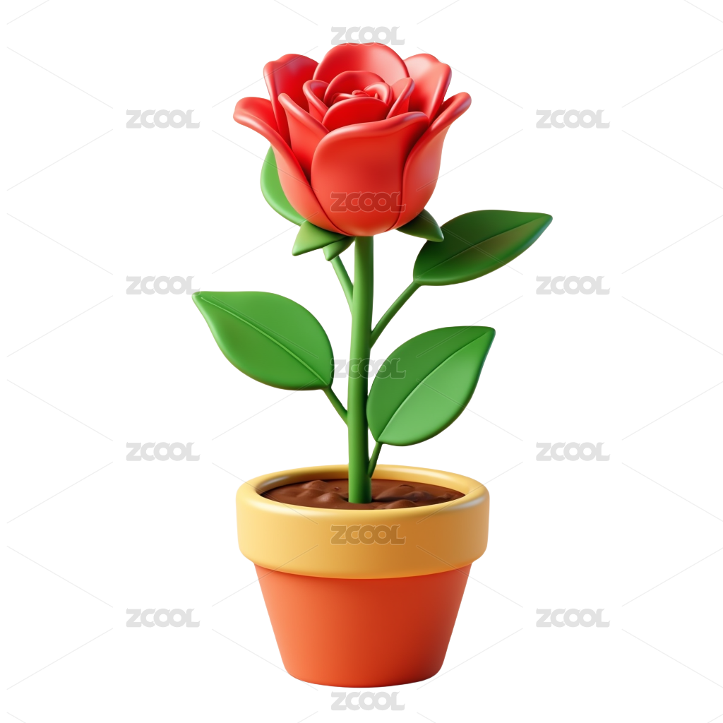 白色花瓶里的一束红色玫瑰花3d情人节插画