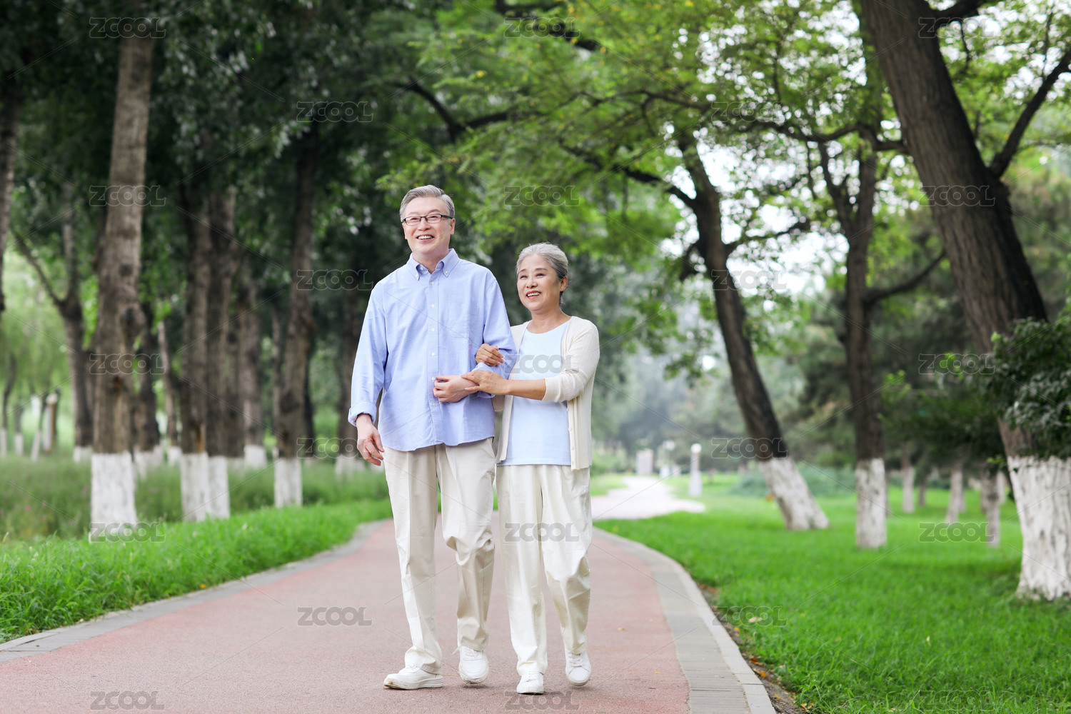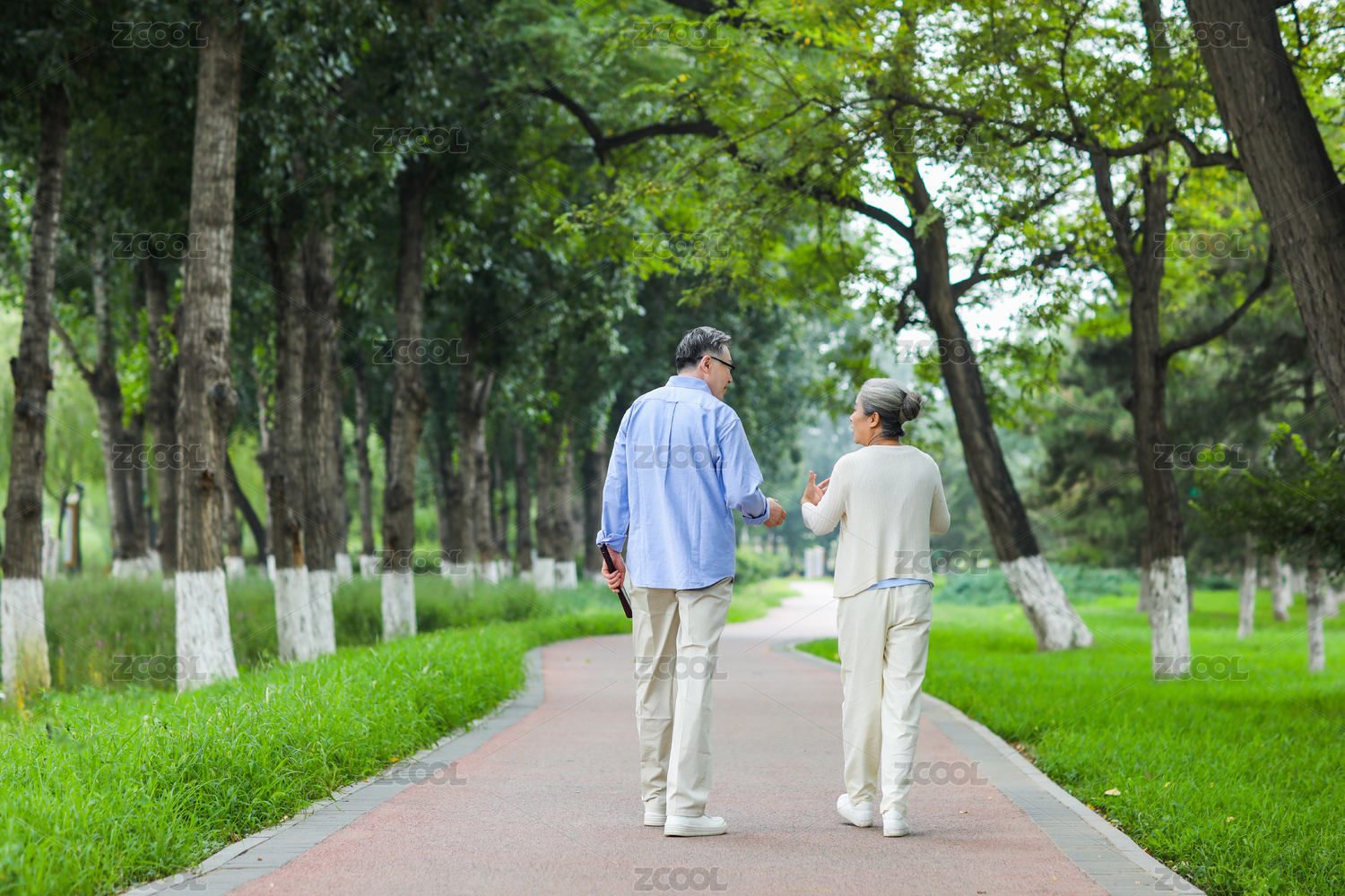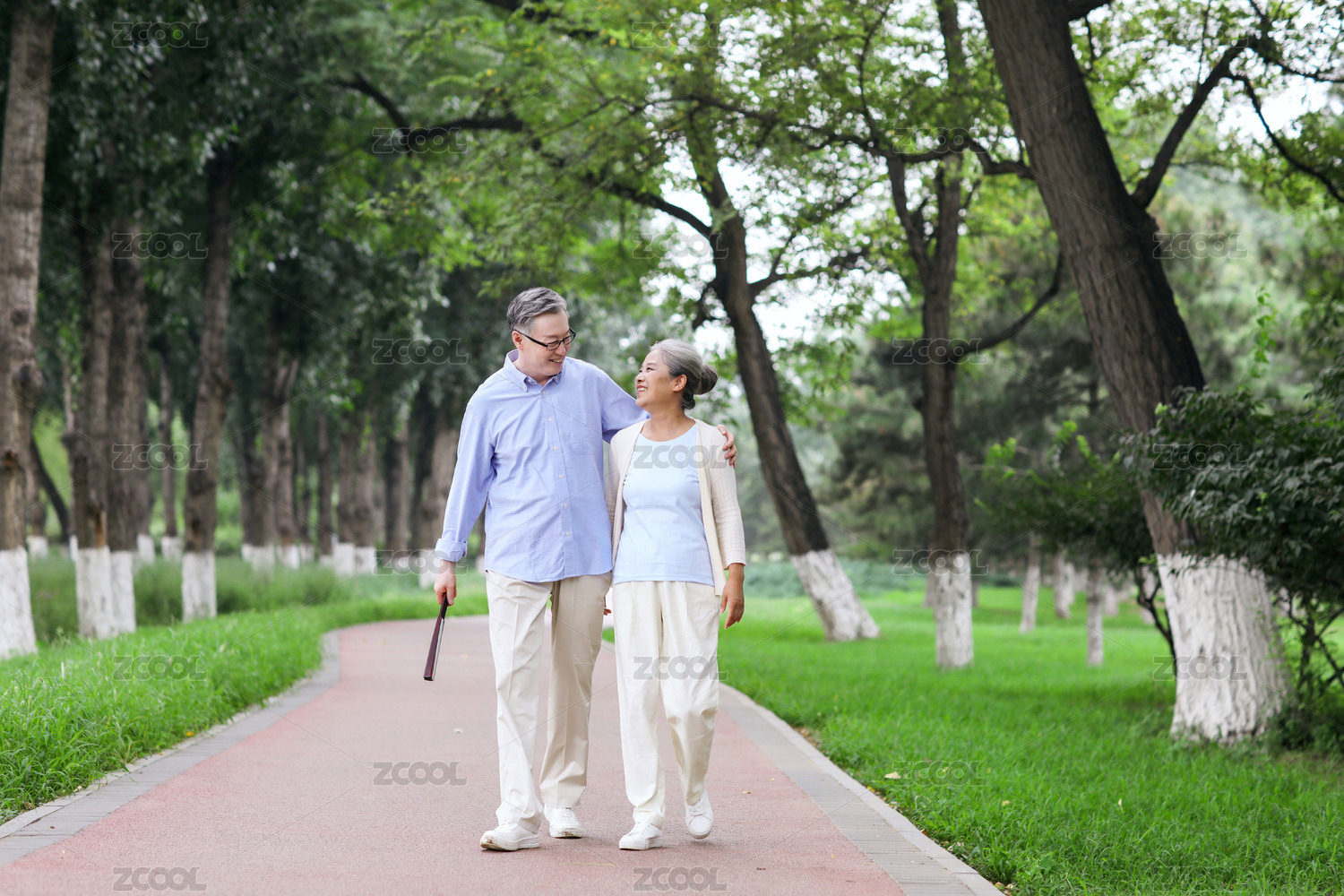 幸福的老年夫妇在公园散步