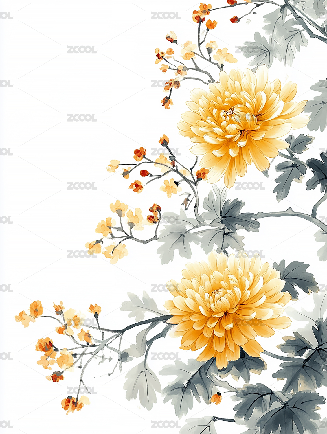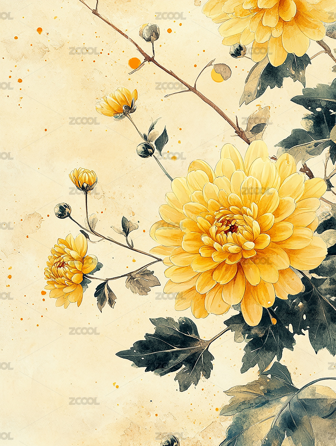 水墨风格的黄色菊花