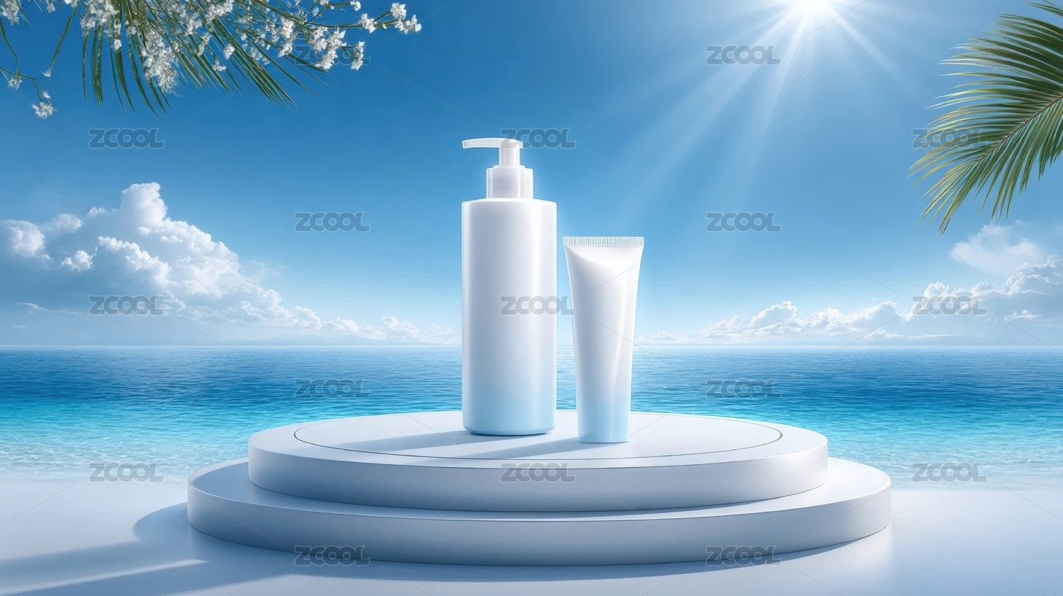 防晒产品夏日海滩展示