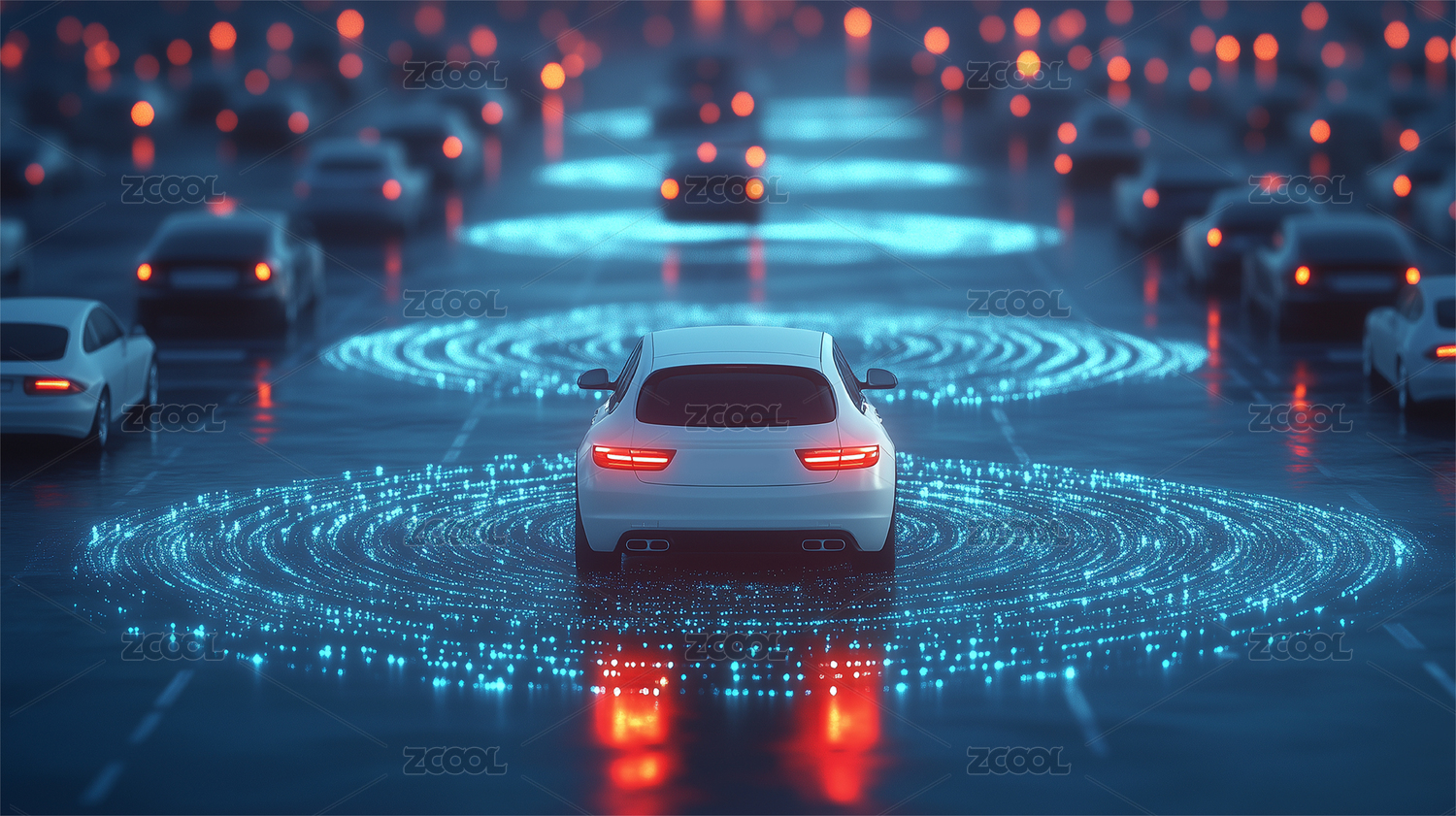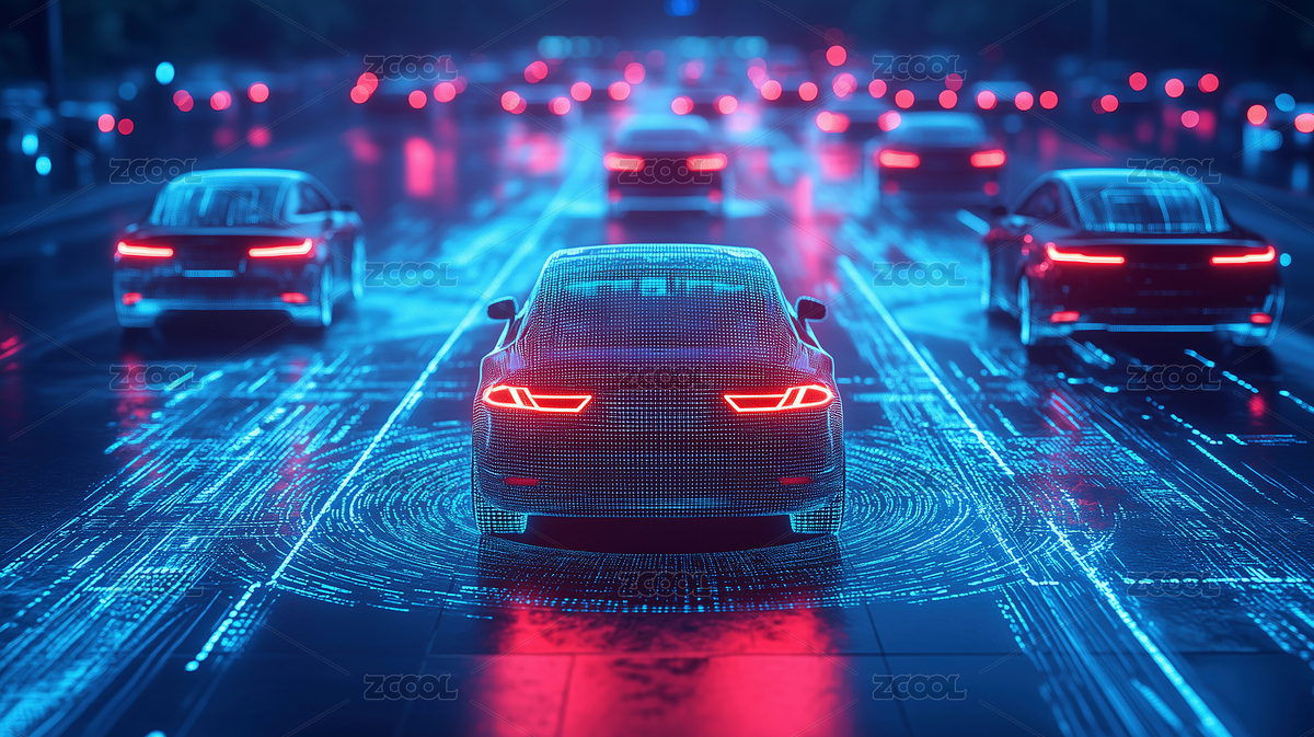 红色,蓝色,自动驾驶,科技感,夜景,汽车,道路,科技,未来,都市