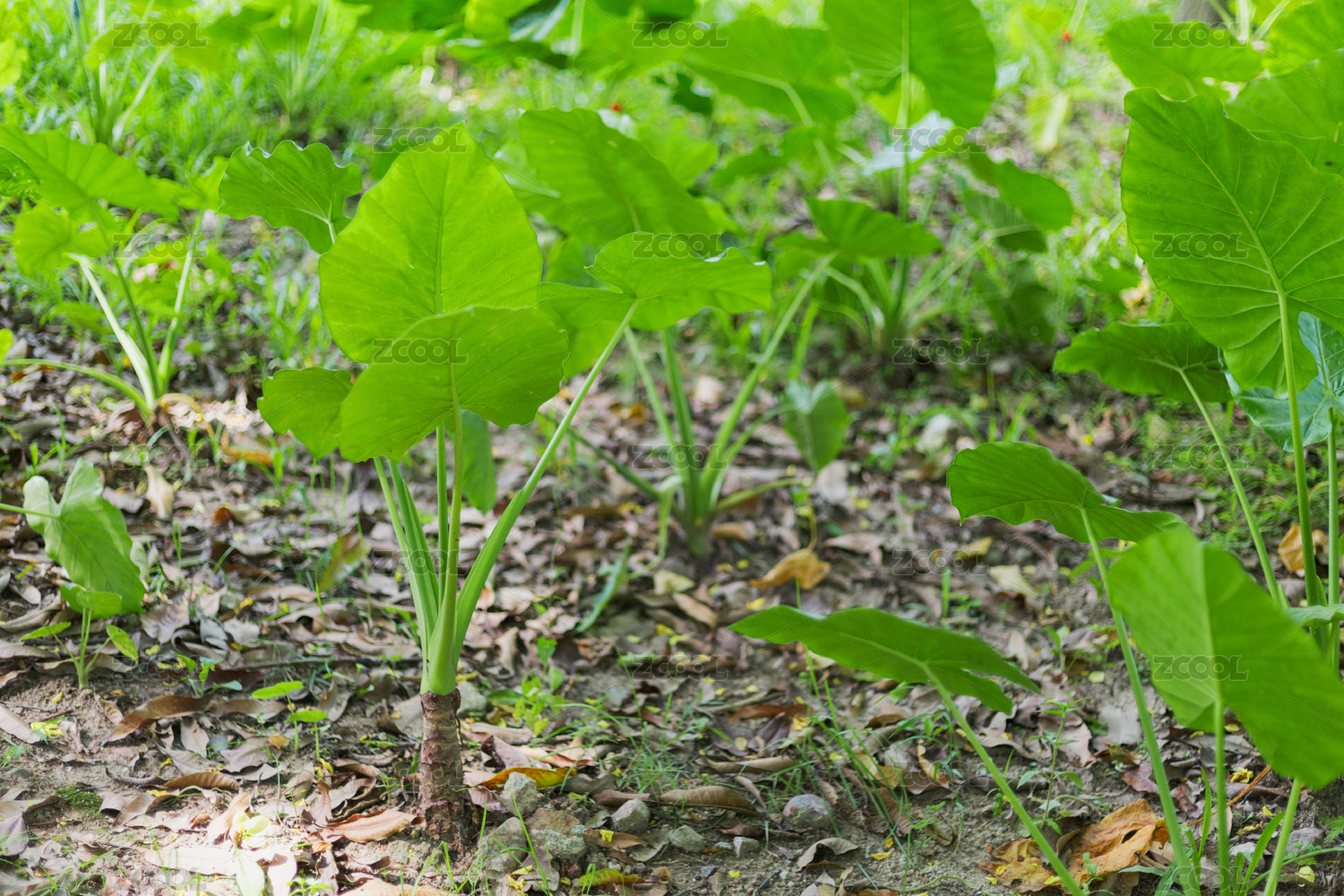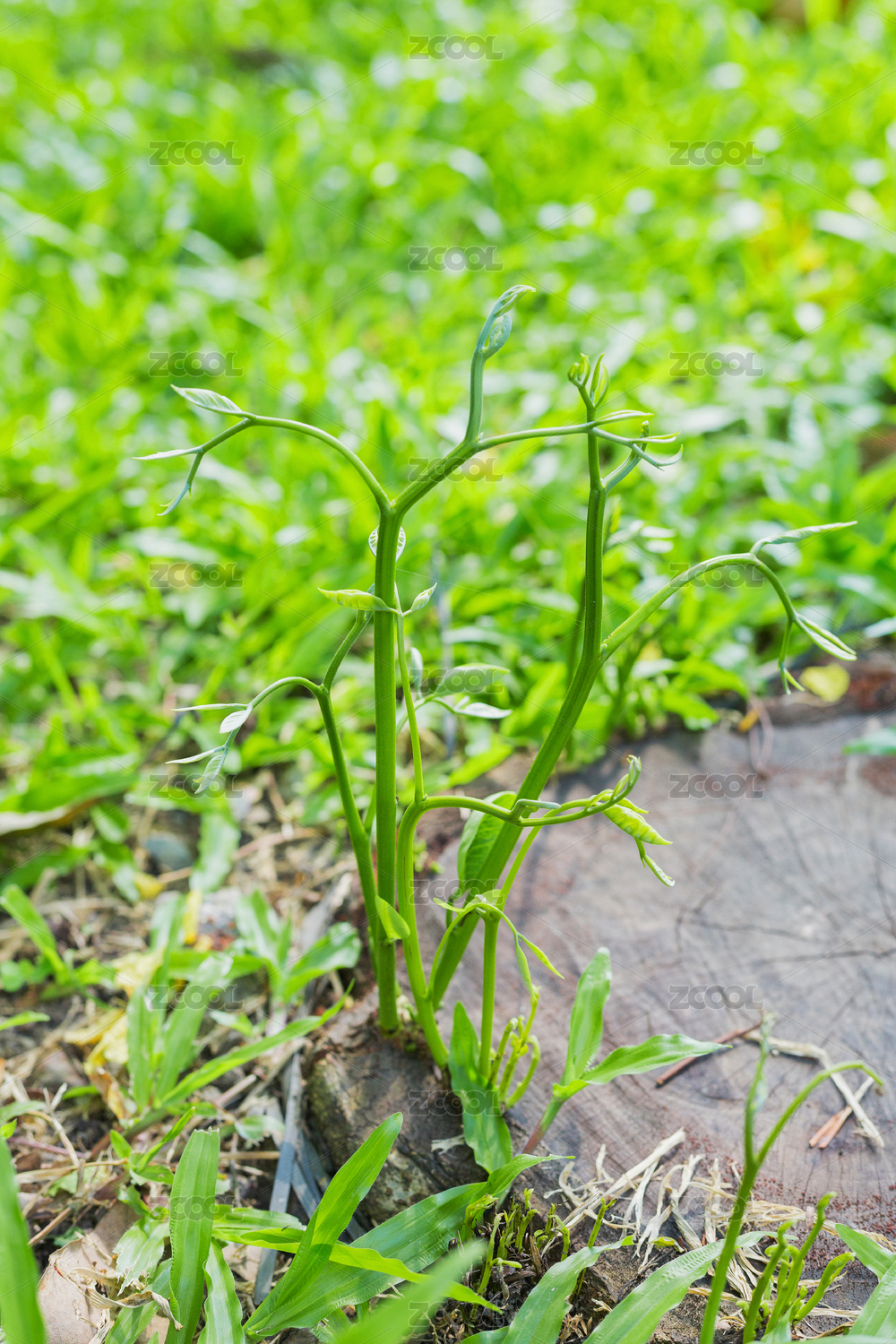 春天灿烂阳光下叶子上带有红色斑点的野草